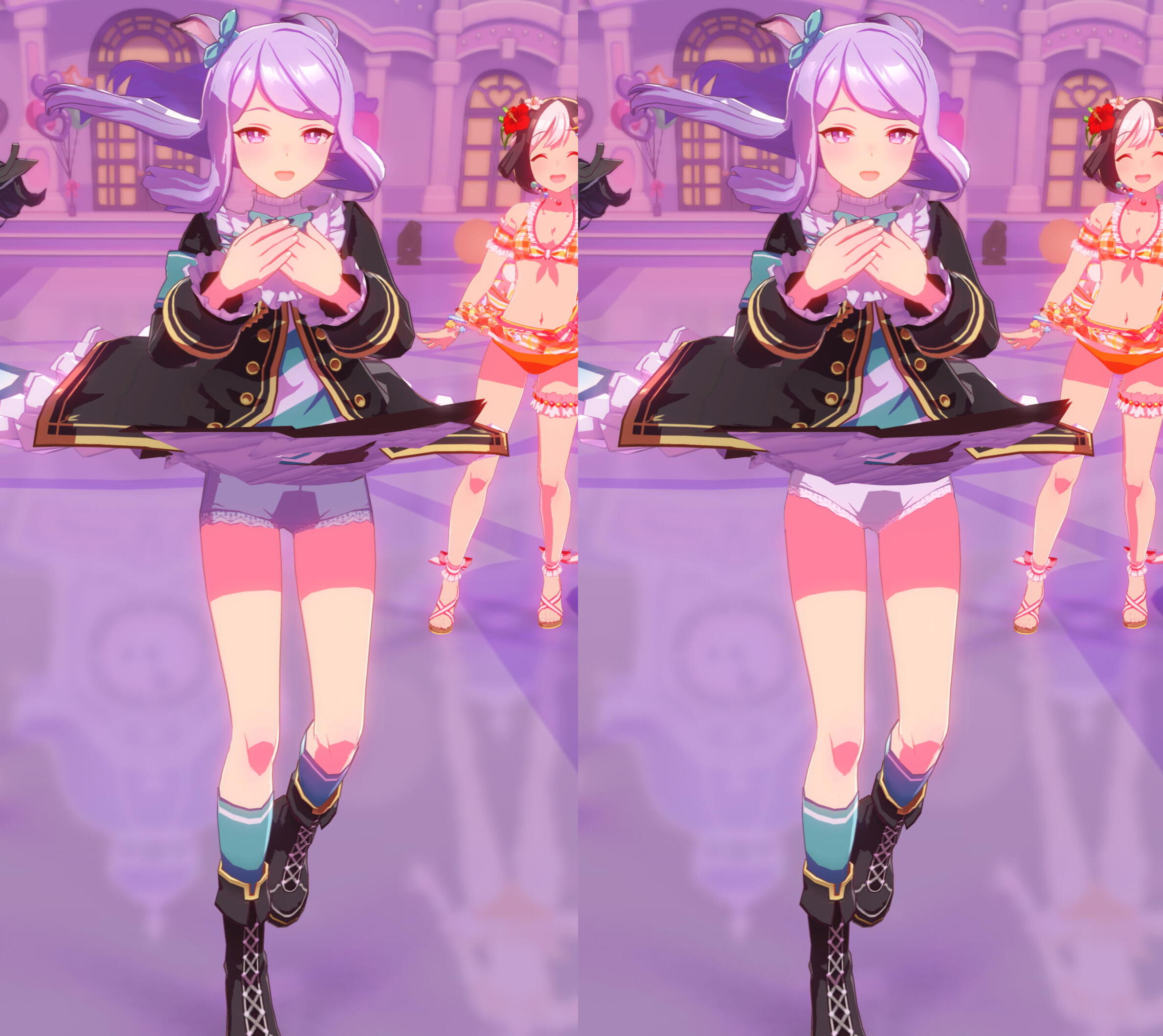 通常マックイーンの見せパンアンスコだし、ご丁寧にクロッチまで付いてるから水着よりパンチラ感あってえっち