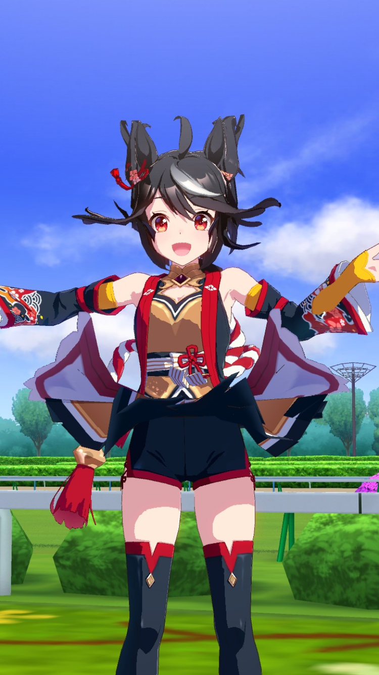 有馬キタちゃんの勝利ポーズを通常勝負服でやらせると中に穿いてるショートパンツ見せつけてくる