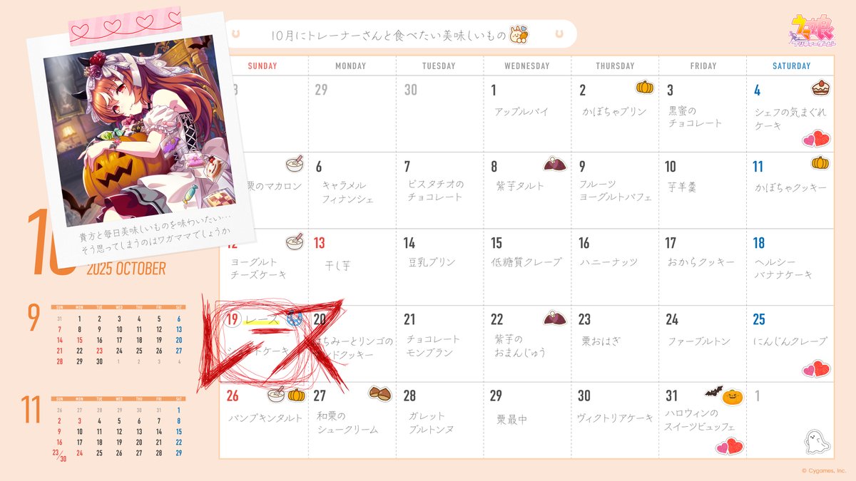 このカレンダーの通りに毎日同じものを食べれば実質スティルと一緒に食べてることになるぞ(ストーカー思考)