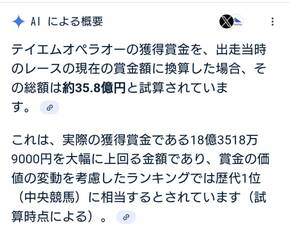 へぇー、テイエムオペラオーって獲得賞金18億円なのかー