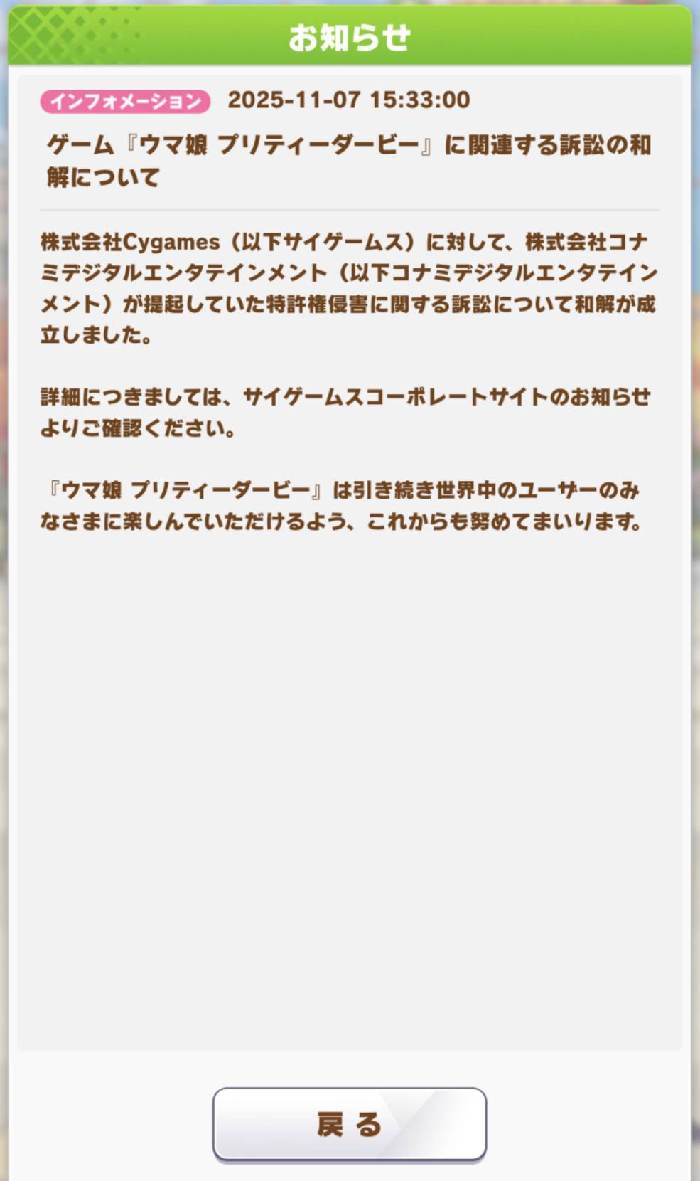 ゲーム『ウマ娘 プリティーダービー』に関連する訴訟の和