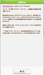 詳細につきましては、サイゲームスコーポレートサイトのお知らせ
