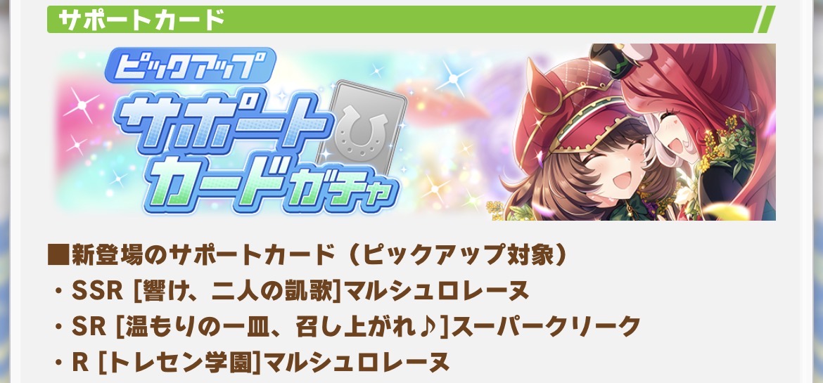 ガチャ更新来週だけど今回は追加の新衣装無さそうだし次は新ウマ娘が来そうね