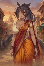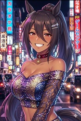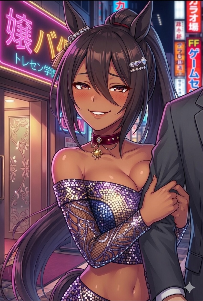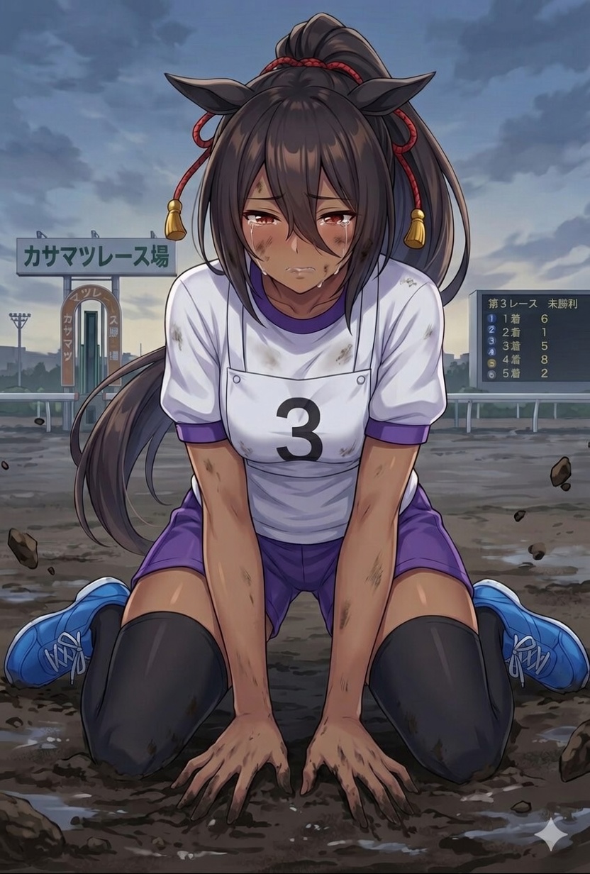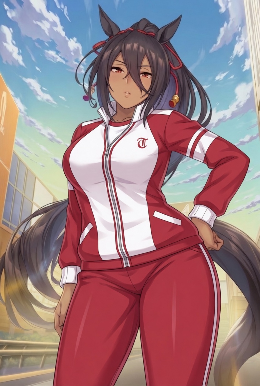 元々とあるNTR系本の絵をgrok君にプロンプト作らせてそれをAI君に読み込ませた結果、黒髪とポニーテールと赤い瞳とその胸しか元の特徴が残らなかった子なんだけど、それをウマ耳とウマしっぽを付けてウマ娘化させたらすっごいお気に入りの子になってしまったんだ。