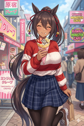 「この子が私服姿で楽しそうに原宿でクレープ食べてる感じにして。