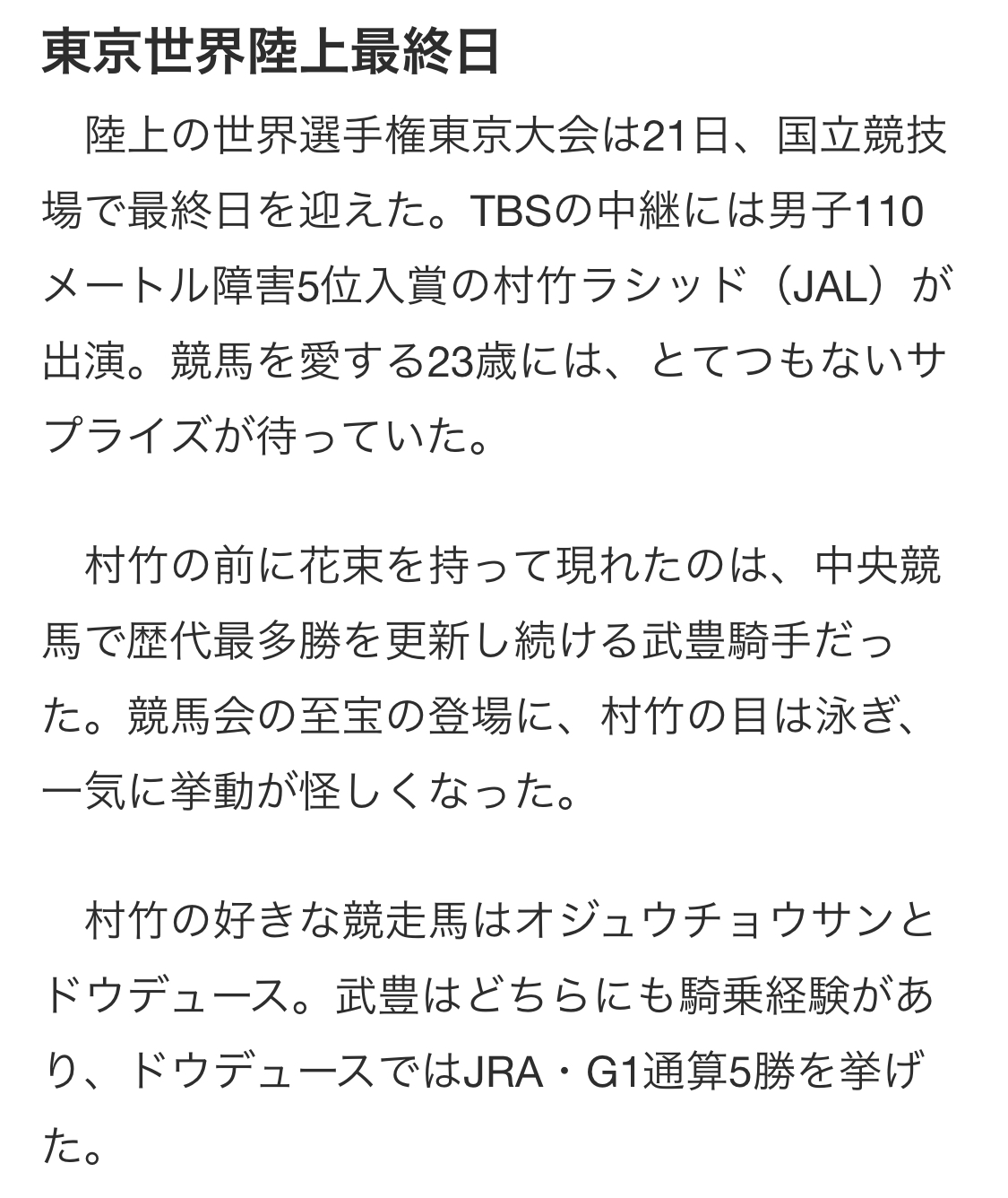 スレタイの「武豊に乗られたい」が「武豊線にお乗りになられた」に見えて、いつ陛下がローカル線に乗ったのかと一瞬焦った。