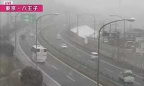 横を走る中央自動車道を18kmほど西に向かった元八王子のライブカメラだとごく普通に降雪状態だな