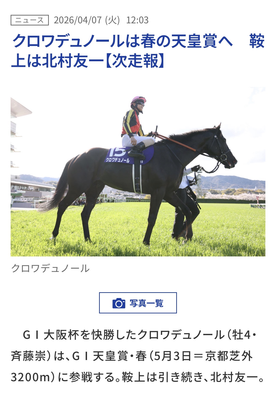 となると宝塚記念まで待ってしまうと叩きとしての意味を成さないから間に春天を挟むことで大阪杯を経ての仕上がった状態をそのまま継続させたいんだと思うわ
