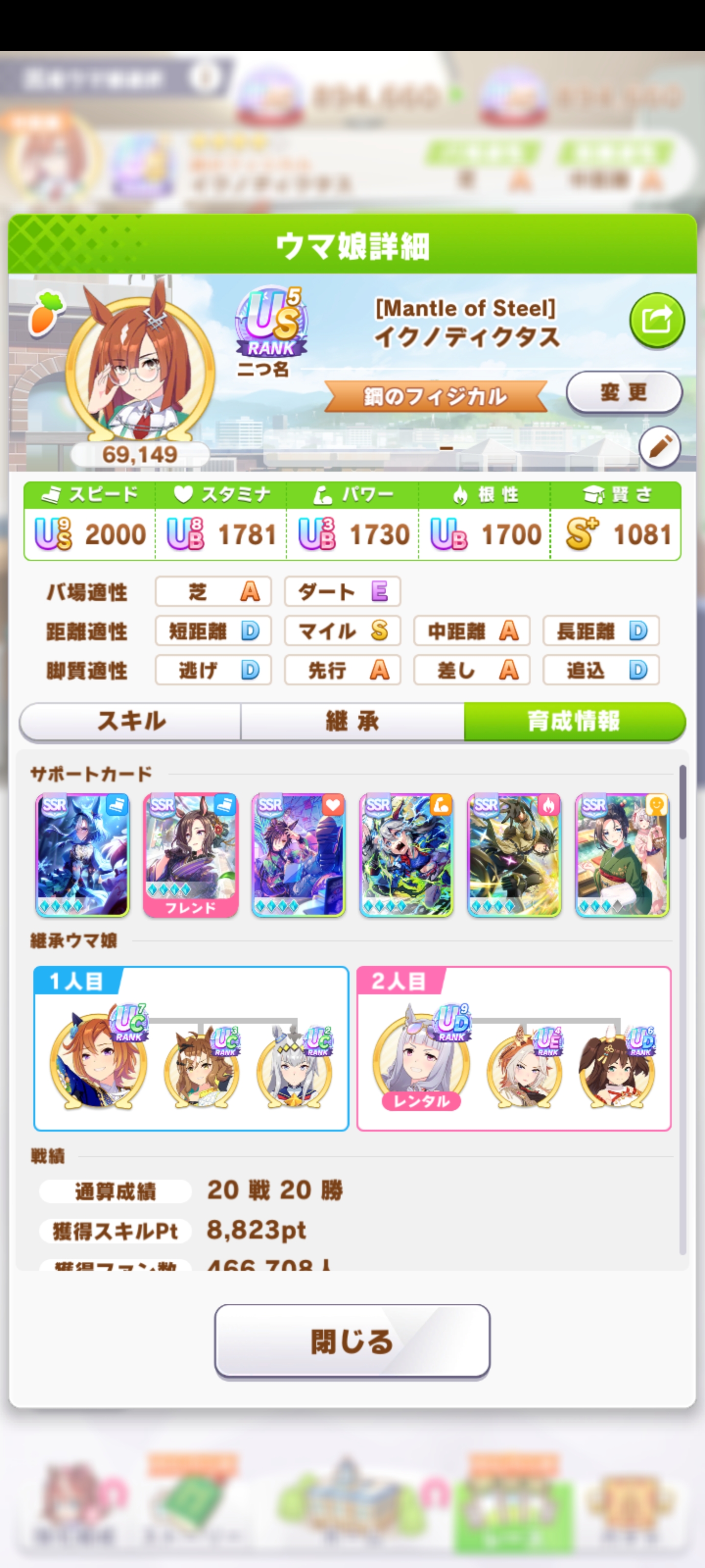 今回のLOHついでにチムレのダート組刷新したら15万pくらい上がってクラス6維持ライン楽に乗るようになったし