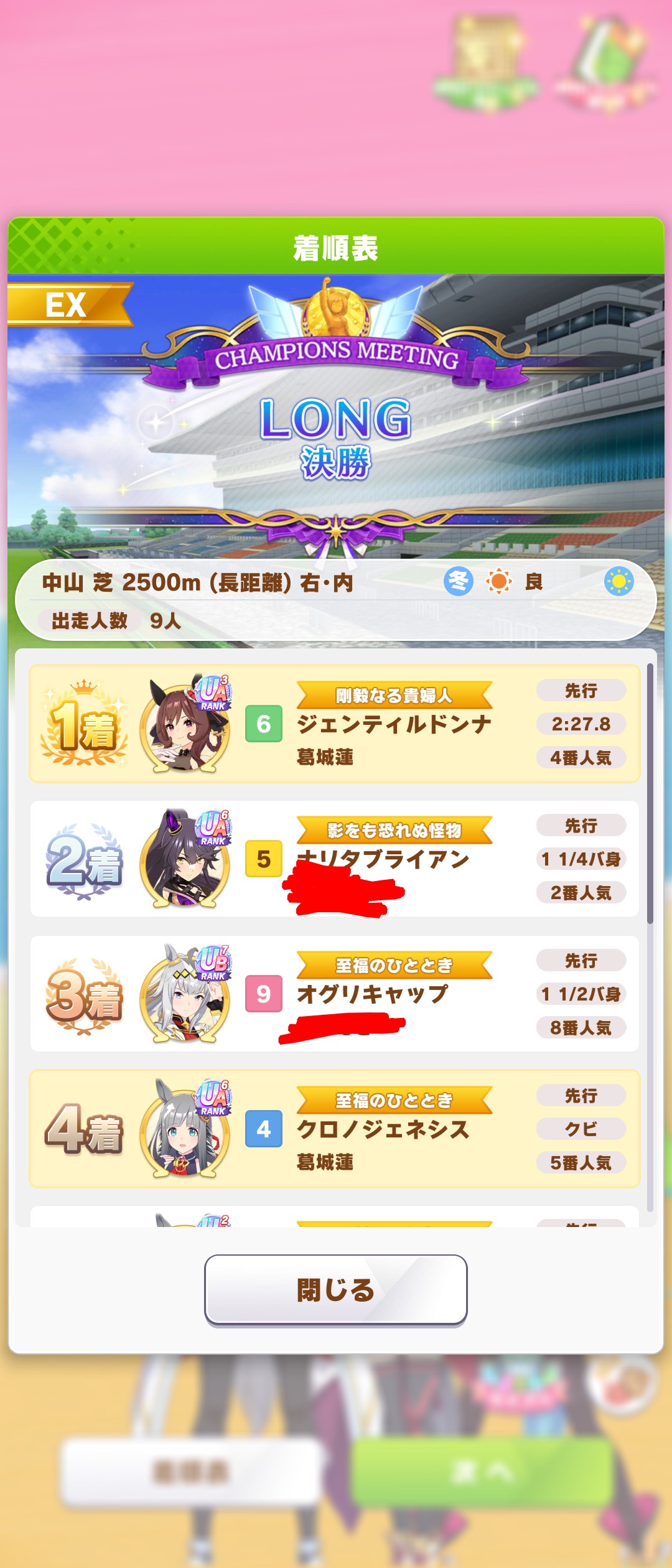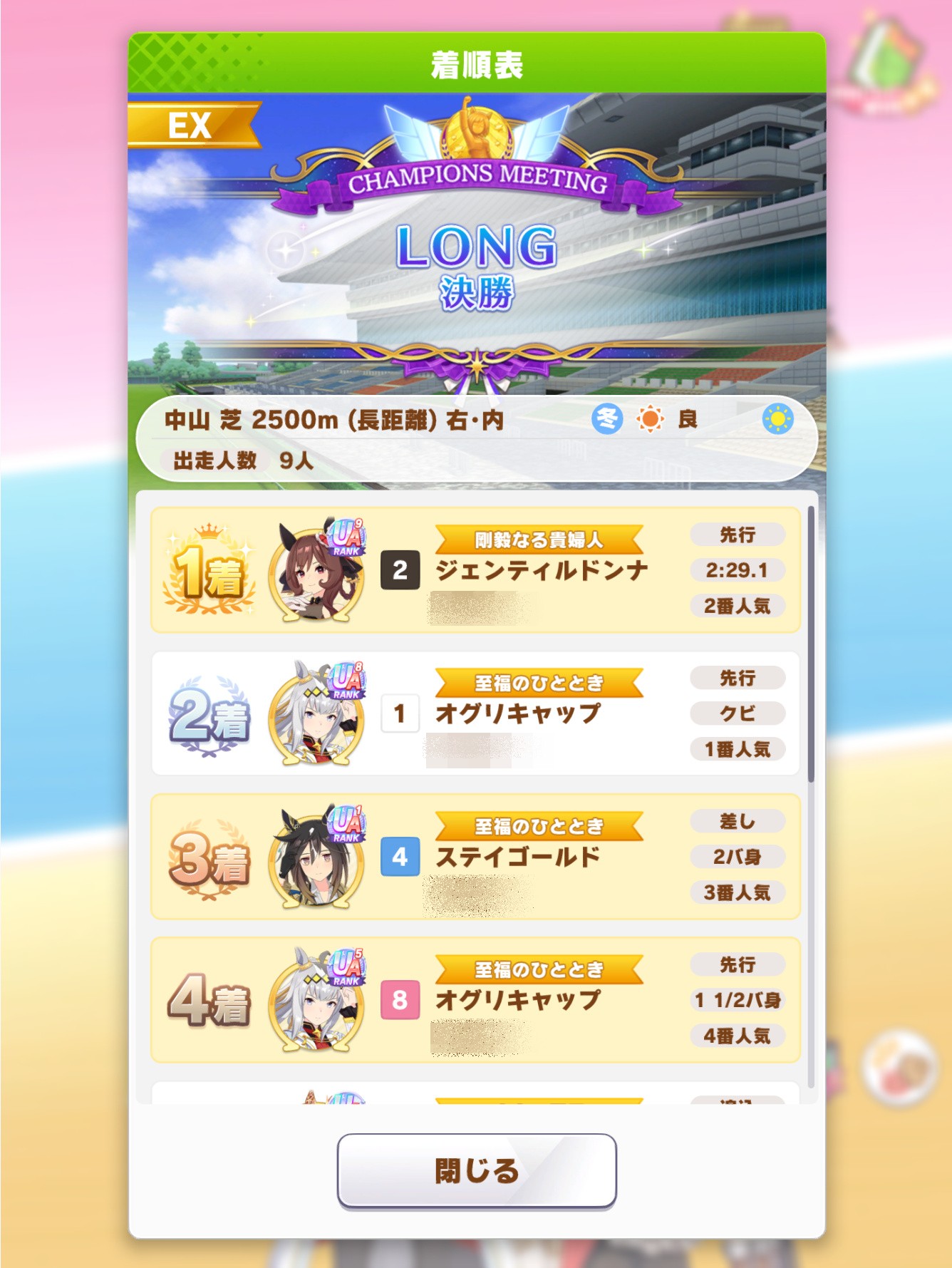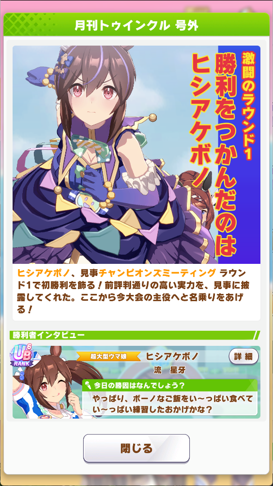 星座杯の頃含めて初の長距離チャンミ制覇は嬉しすぎる
