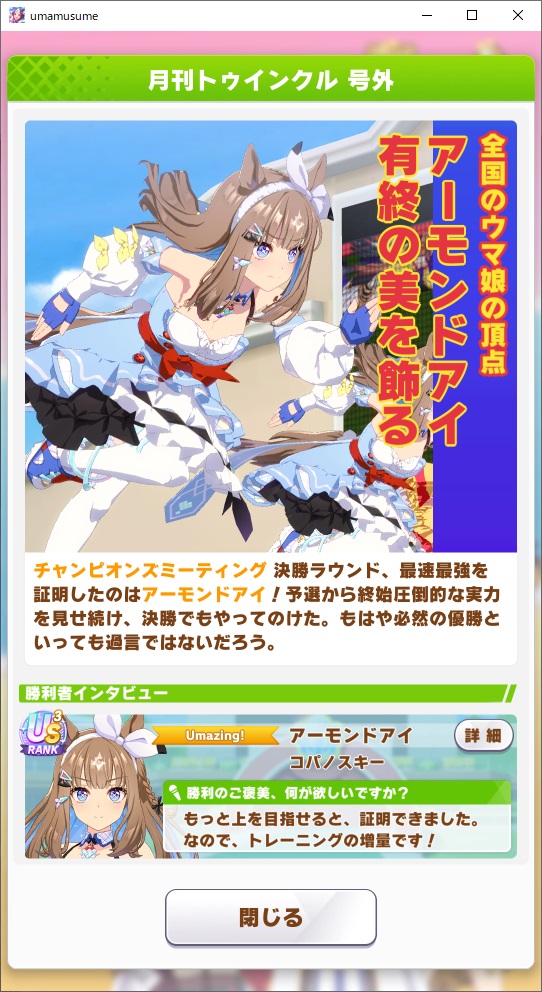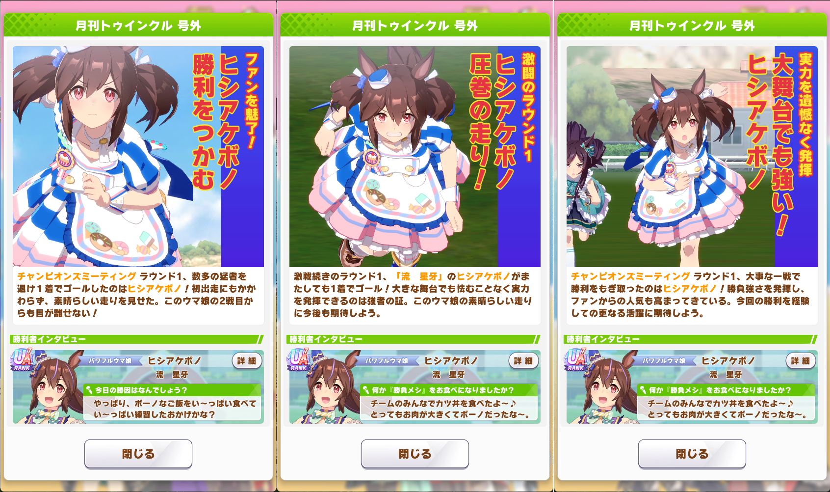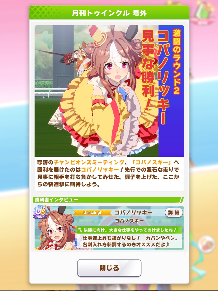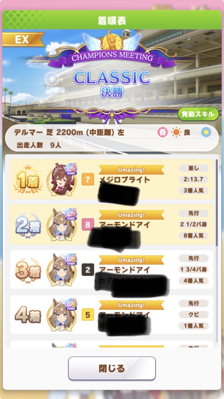 優勝できたけどオープンでBグループだったからだろうか相手のウマ娘の登録日が去年だったり一番古いのだと3年前だったのだ