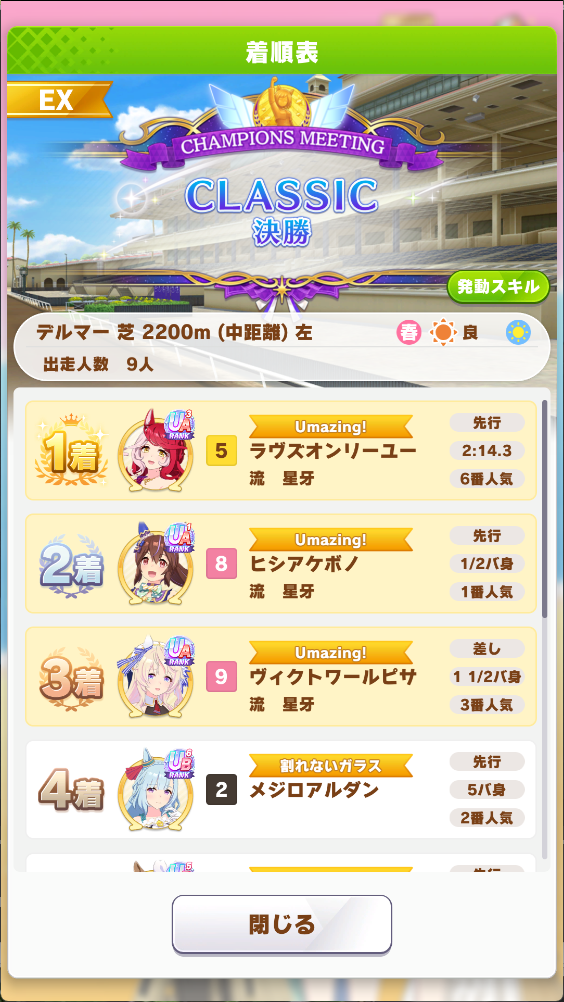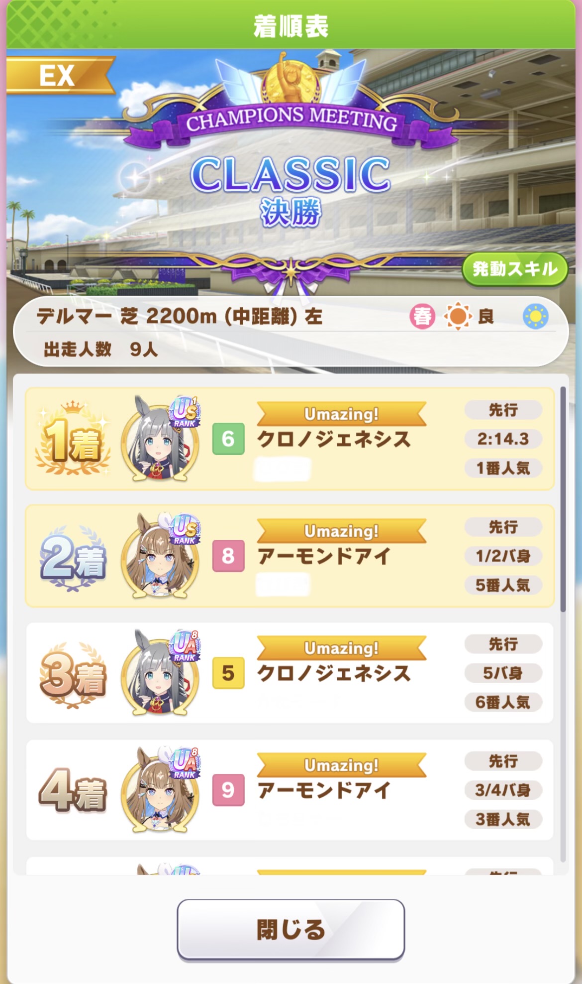 先行は最速のショーダウン(勇気の一歩)に加え夢の舞台へ等ランダム加速