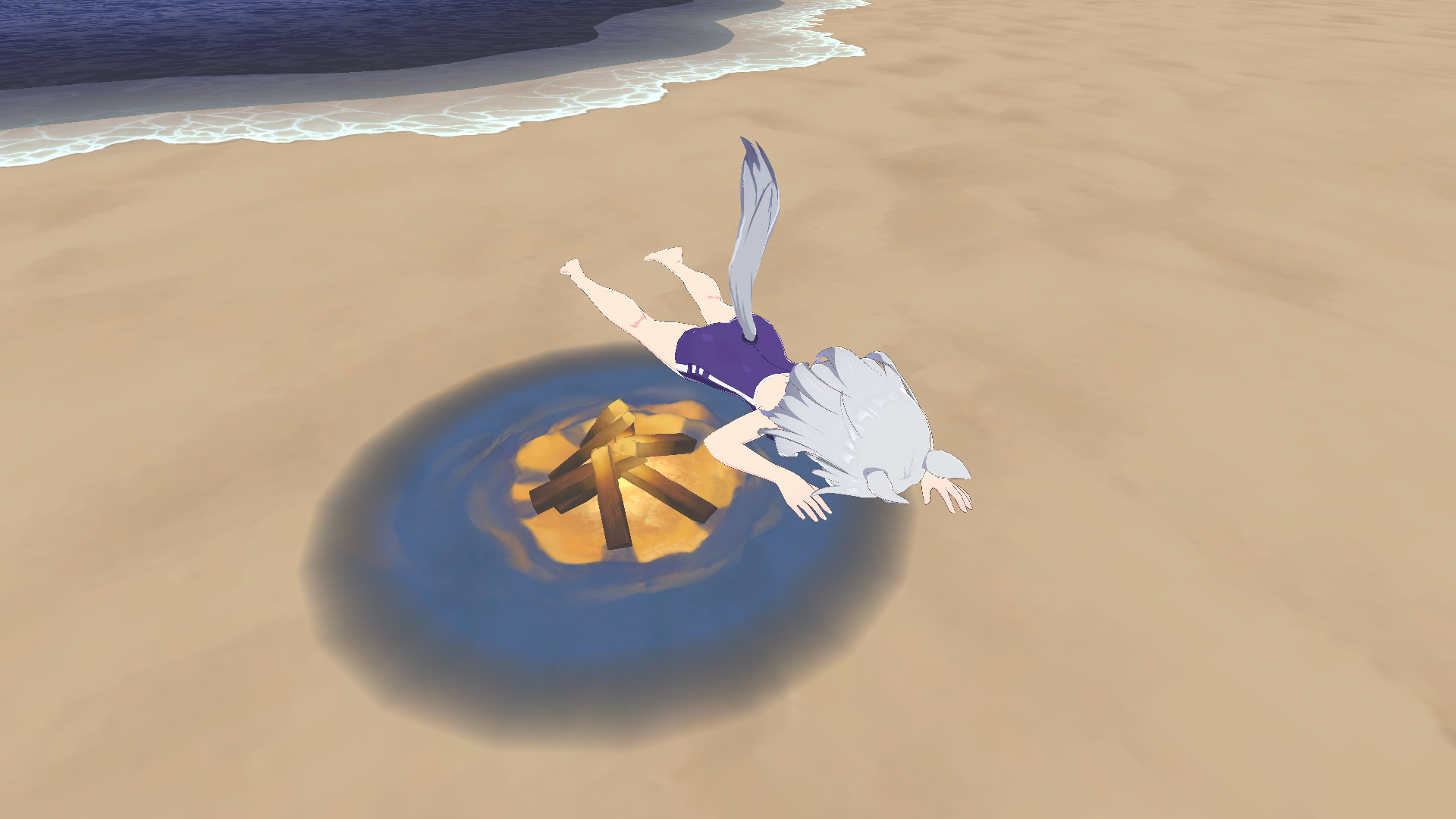 無事、泳ぎ切った砂浜で力尽きる。