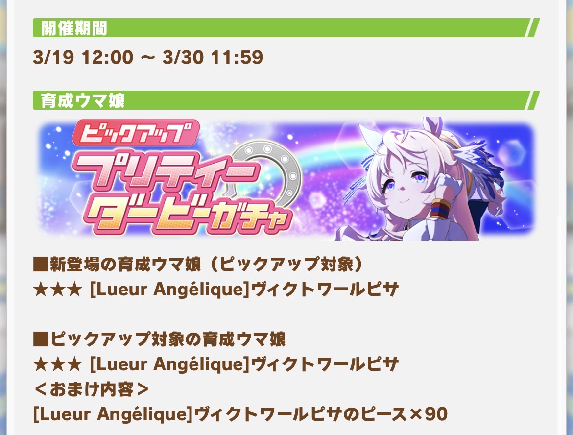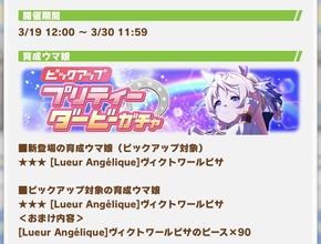 次のガチャは新衣装バブルさんだろうし今月新しく育成実装される子は1人だけかな