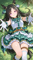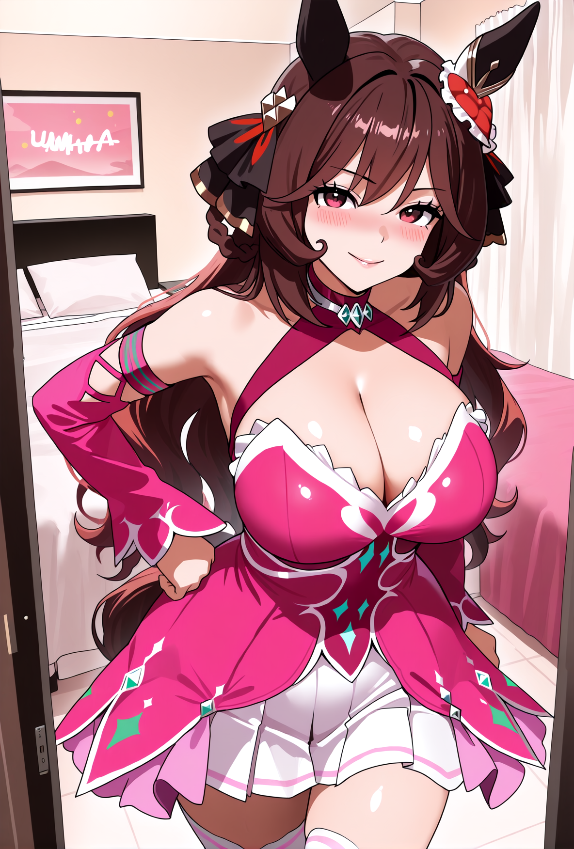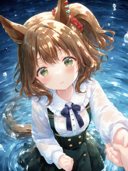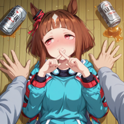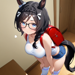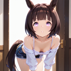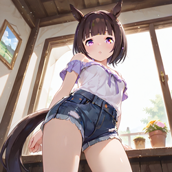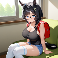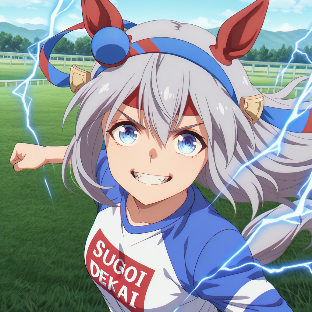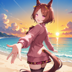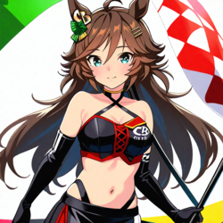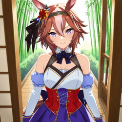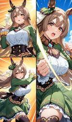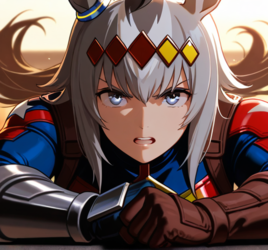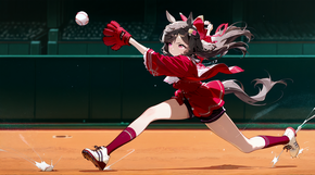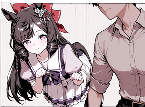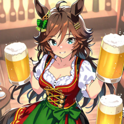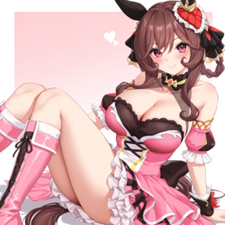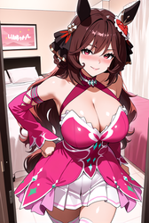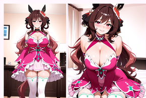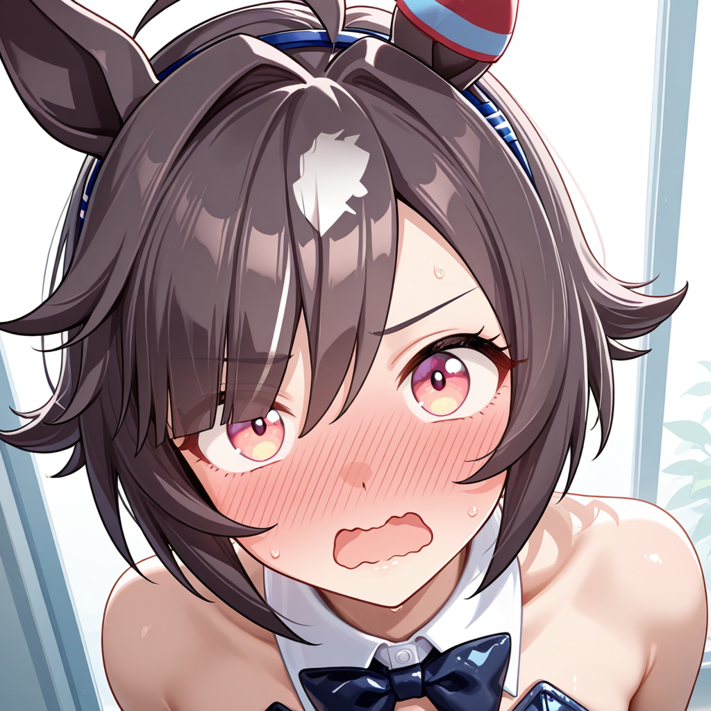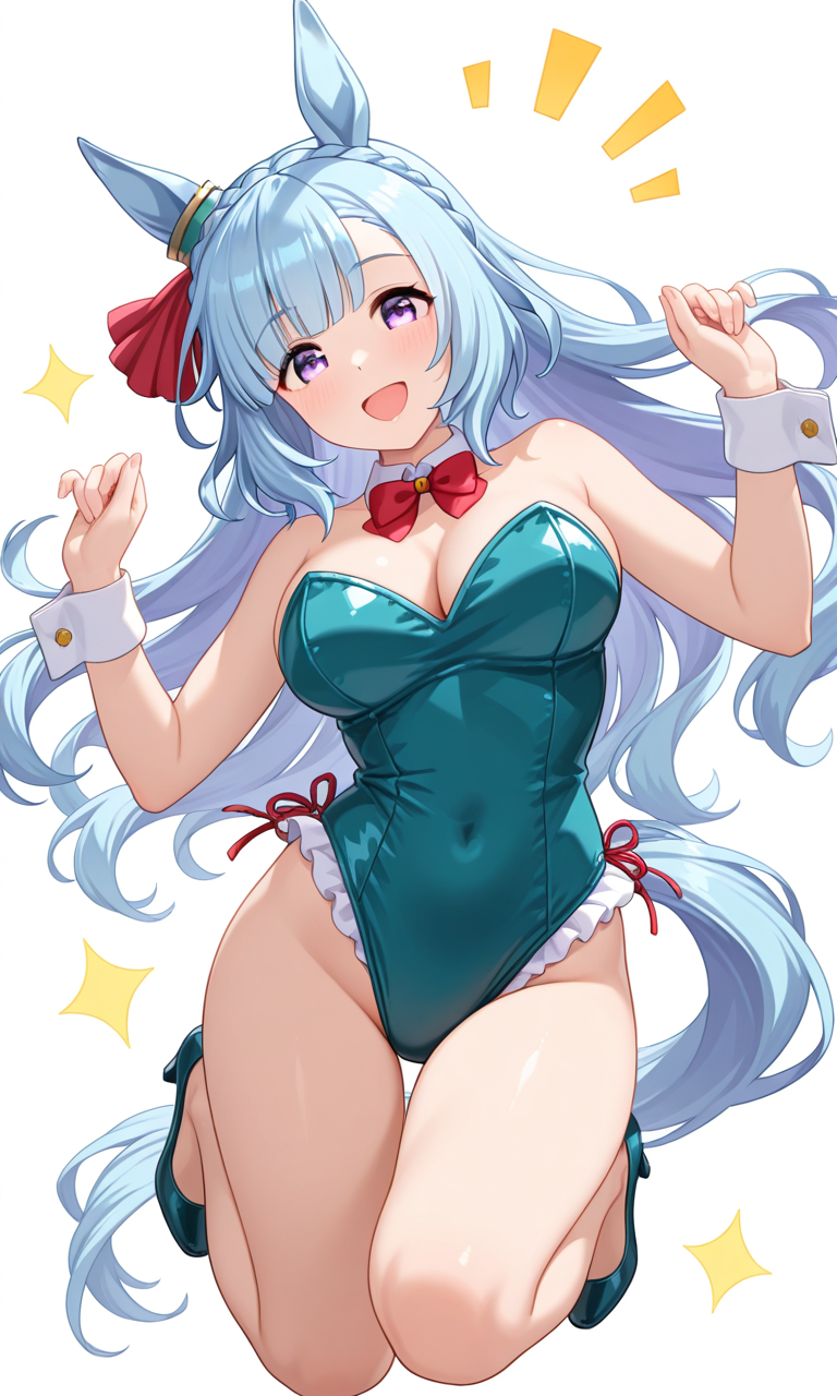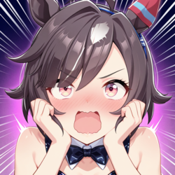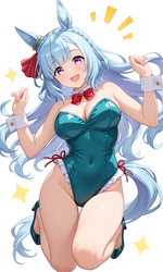 ちなみにこちら、『(顔が出るタイプの)うさぎの着ぐるみを着てはしゃいでるメジロアルダン』で出力したら何故かAIくんがバニースーツでお出ししてきたものです。