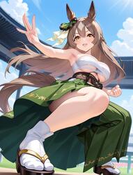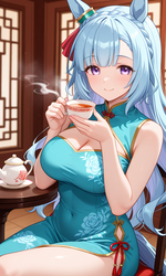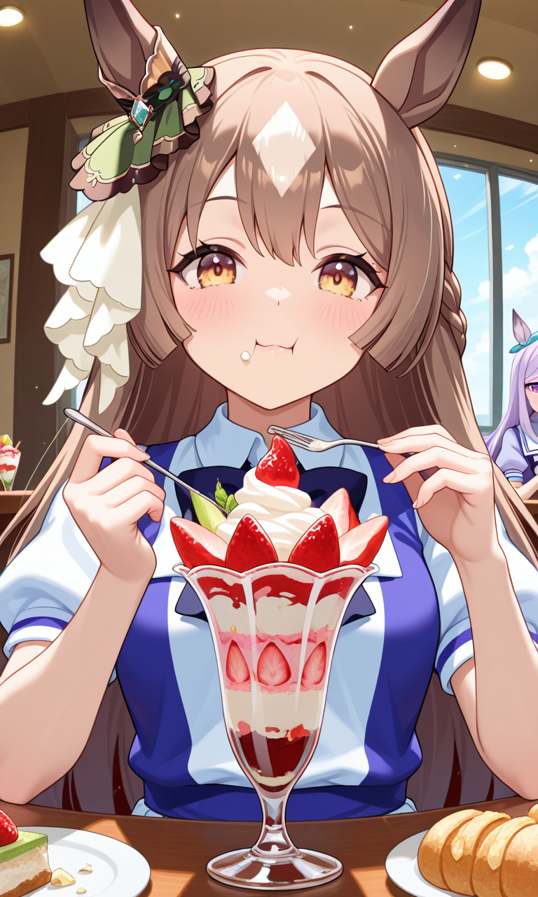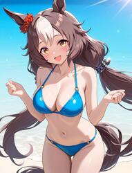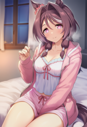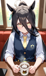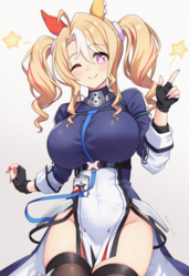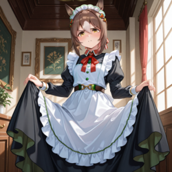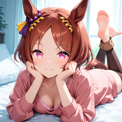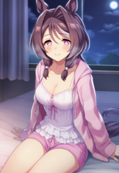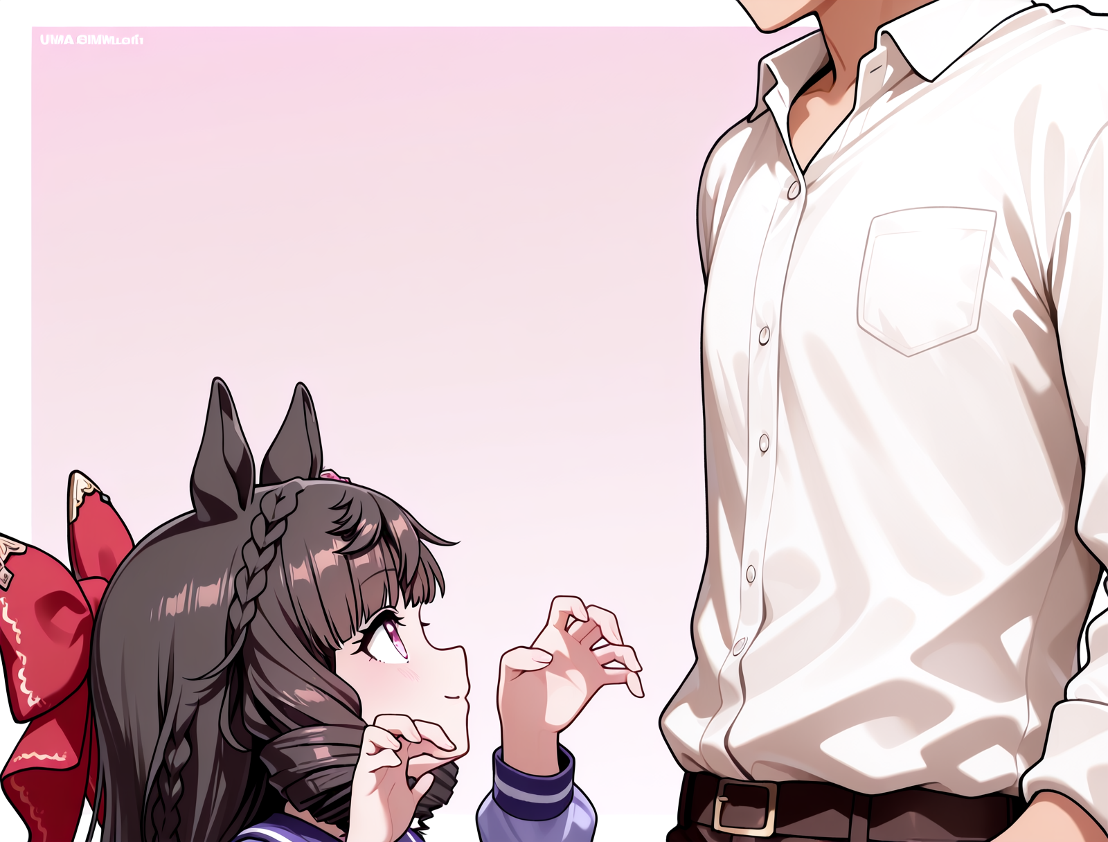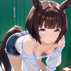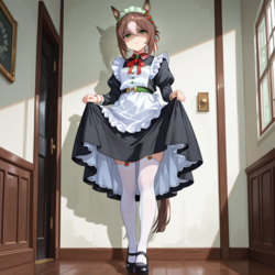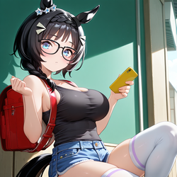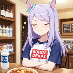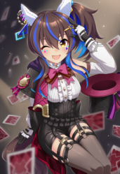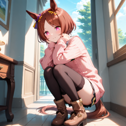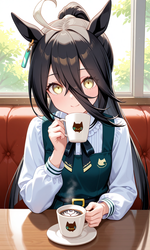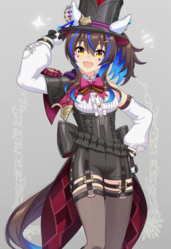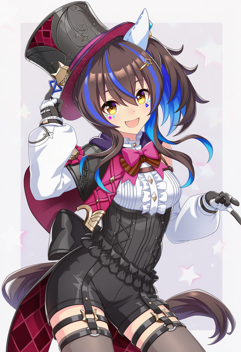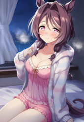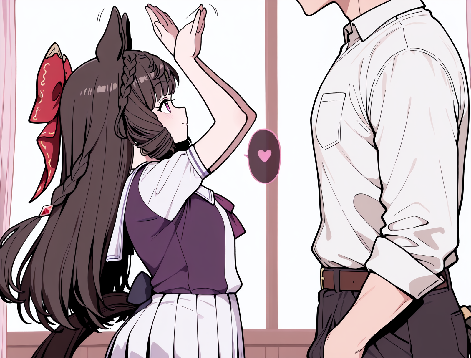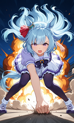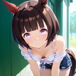 ちなみにこちら、『(顔が出るタイプの)うさぎの着ぐるみを着てはしゃいでるメジロアルダン』で出力したら何故かAIくんがバニースーツでお出ししてきたものです。