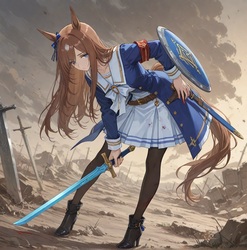 「このシルエットのウマ娘を想像で描いて。ヒントは日本とドバイとアメリカのダートG1勝ってるってことだけ」