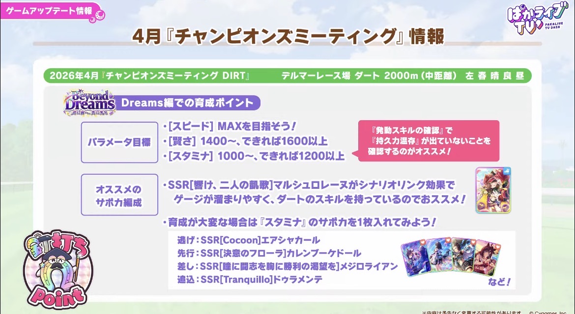 今回でもちらっとやってた勝負服デザインに関連してクイズ形式やったり、
