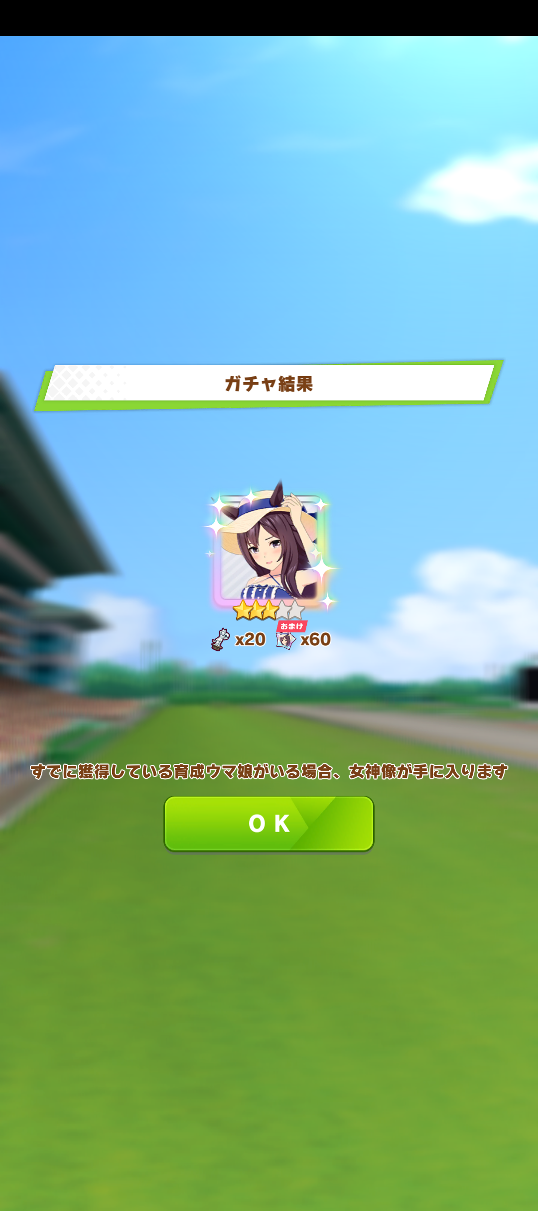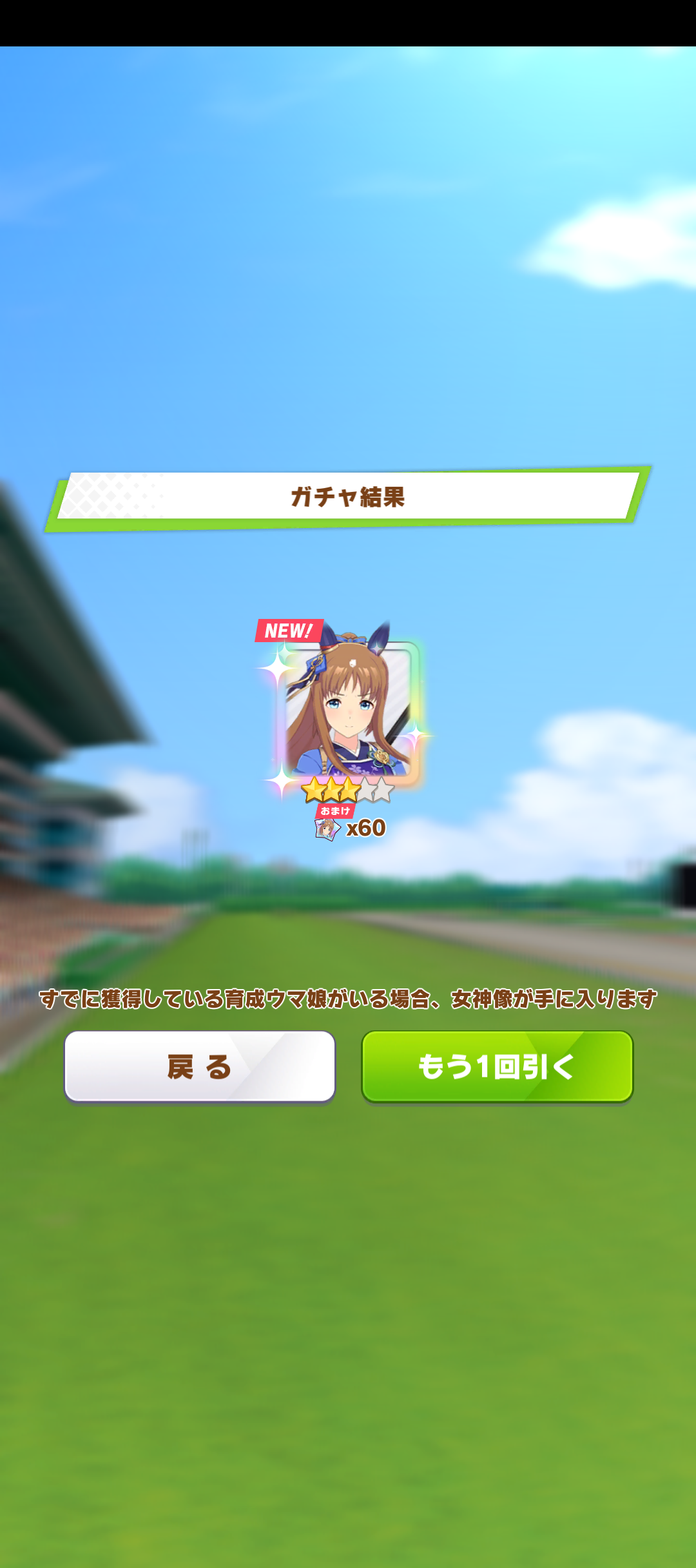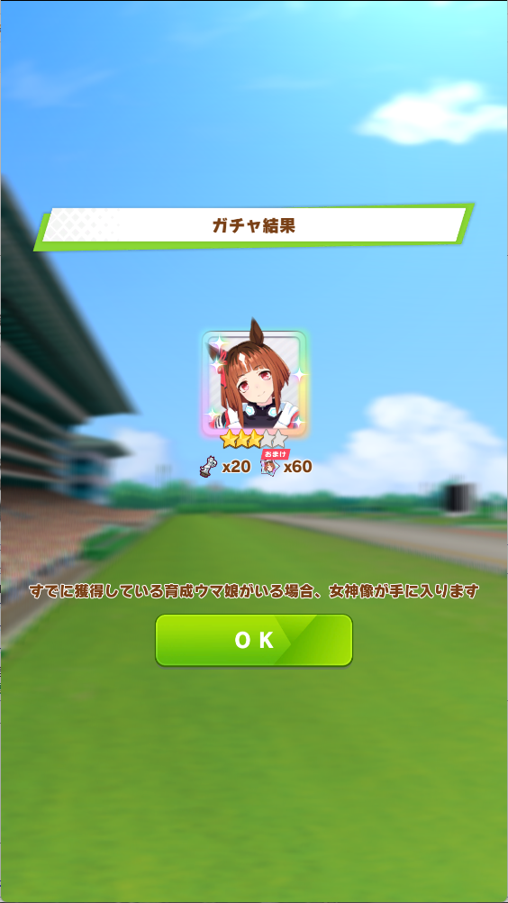 これに関しては2回ずつ通常スペと通常タイキ引いてるから未所持に限定してくれと声を大にして言いたい