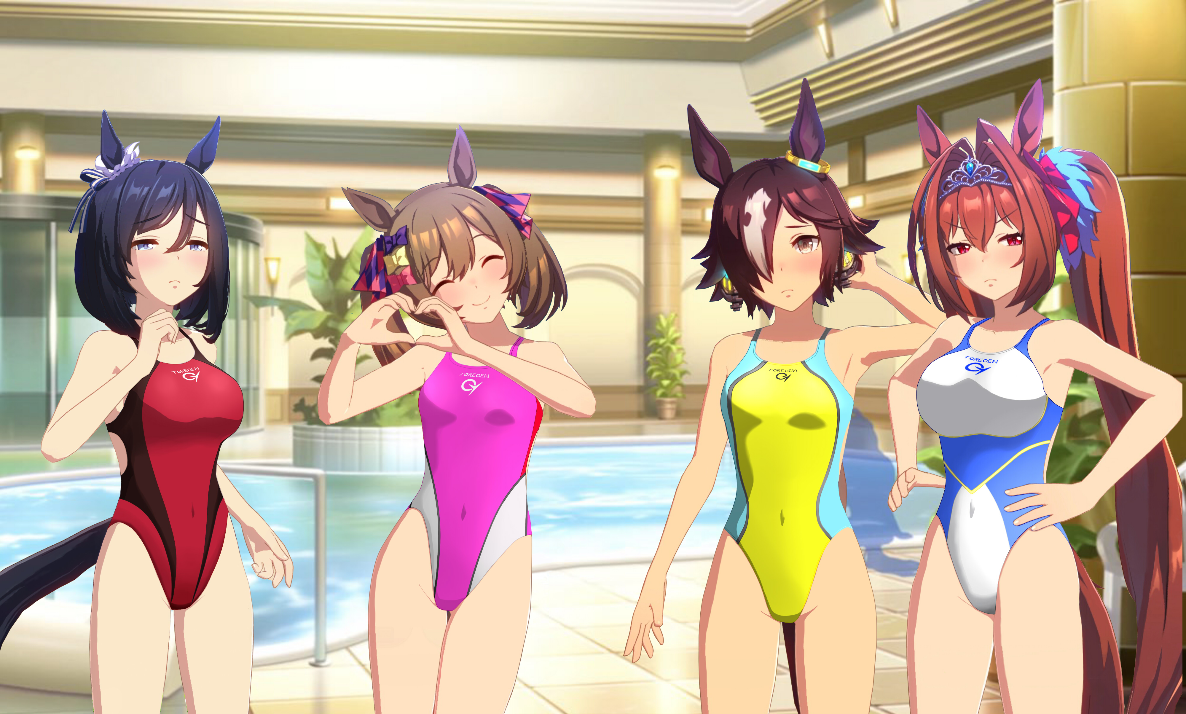 某所で『トレセン学園の指定水着をハイレグ競泳水着にして欲しい』という声を耳にした。ので興味本位でハイレグ競泳水着コラを作ったのでこちらで公開いたします