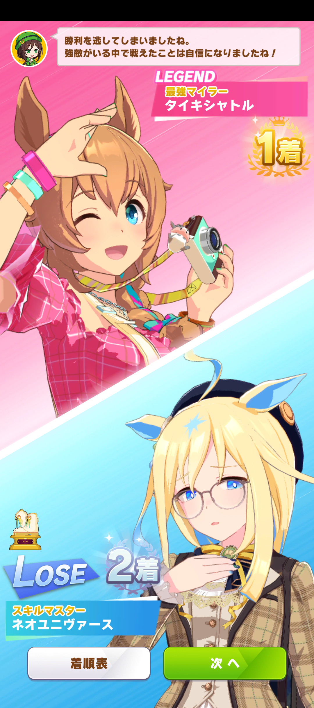 デイリーレジェンドレースのだけどブリコンに頭抑えられて短距離SのUEネオユニが負けた