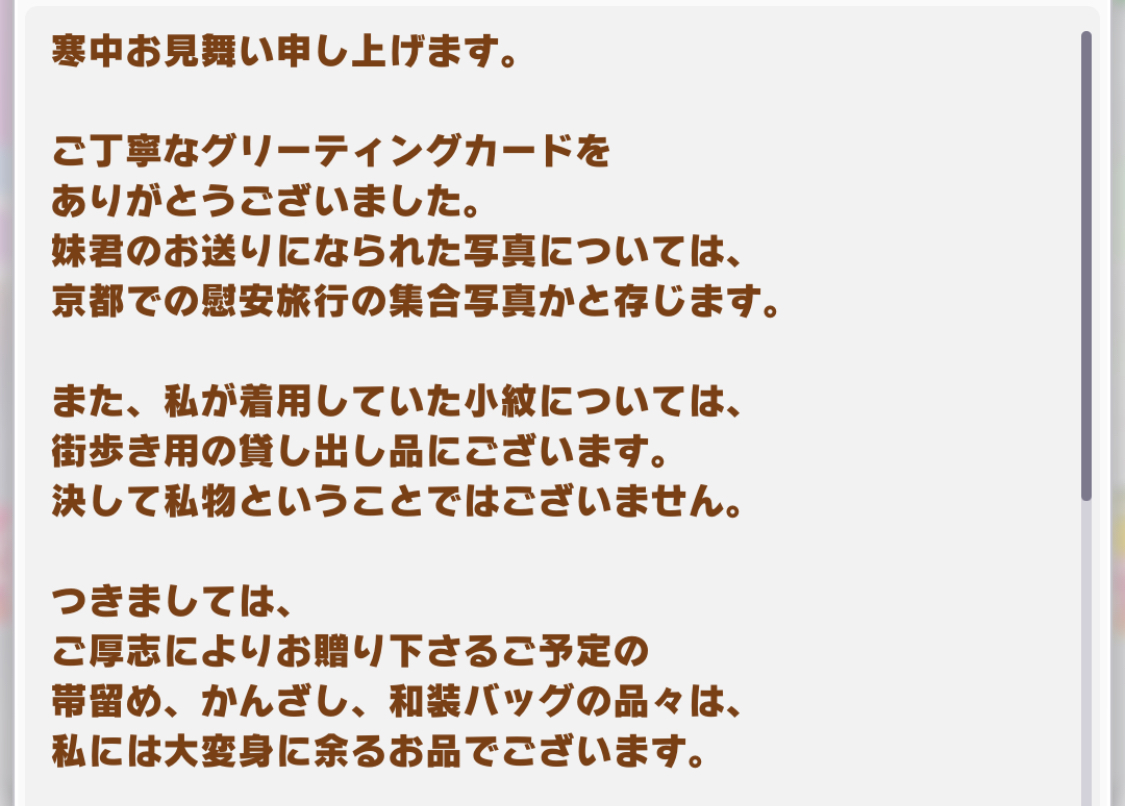 ウマ娘世界のピル姉なら「この慎ましさ……流石は我が麗しき花……!」みたいな感じでこういうお手紙でも喜んではいそう