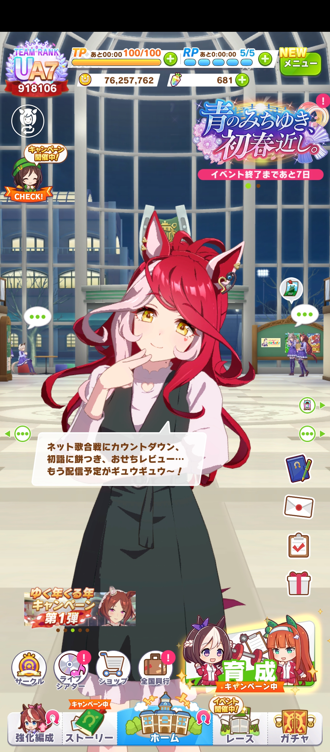 新規実装されて引いた子をホーム画面に配置してそっちに気がいってしまい