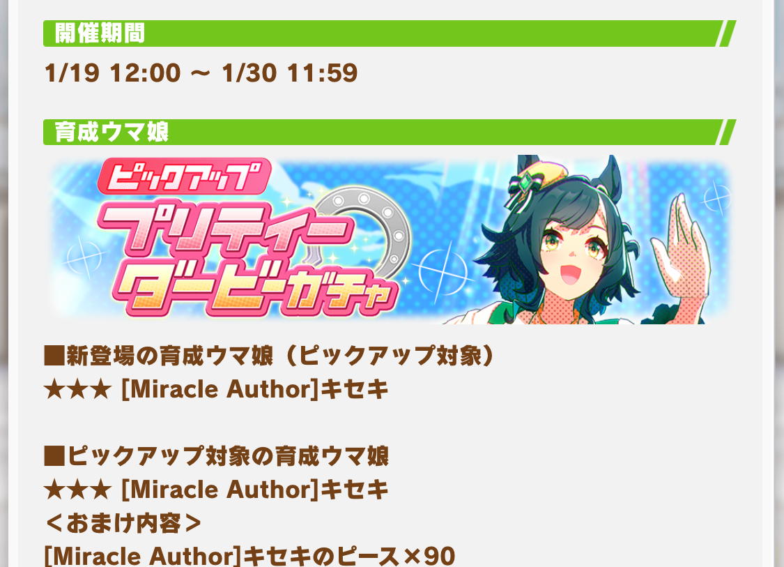 育成実装日に『キセキのお話に登場!』って形でウマ娘の姿が発表されるか