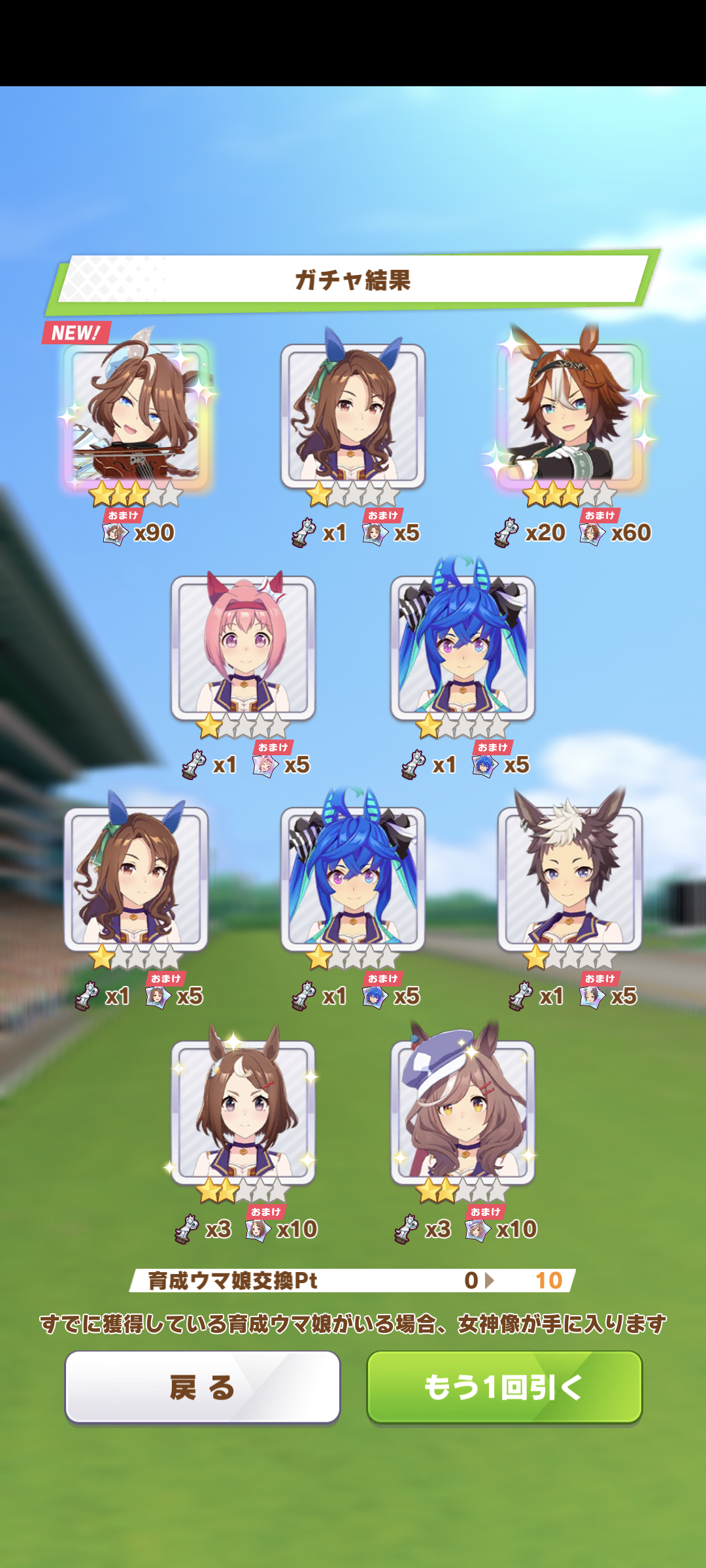 ステイゴールドPU→20連でステイゴールド獲得(+既所持1人)