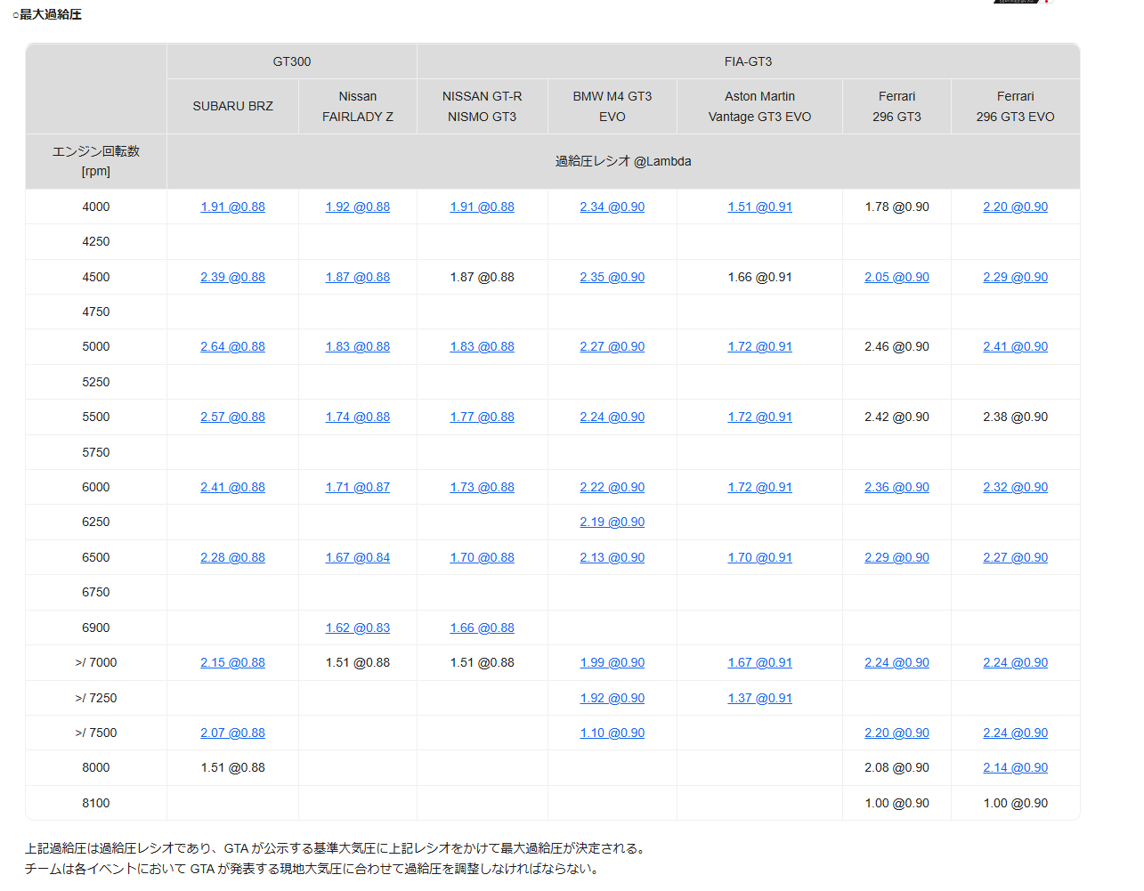 M4と言えば様子のおかしい最大過給圧だけど2024年に比べて絞られてるけど