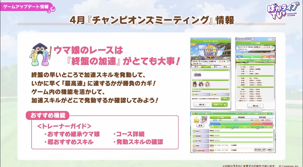 今回でもちらっとやってた勝負服デザインに関連してクイズ形式やったり、
