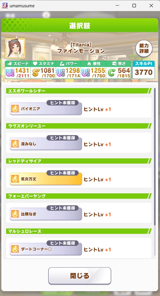 現状新シナリオの選択肢で金スキル取れないのはレッドディザイア(気炎万丈)のみなんだが