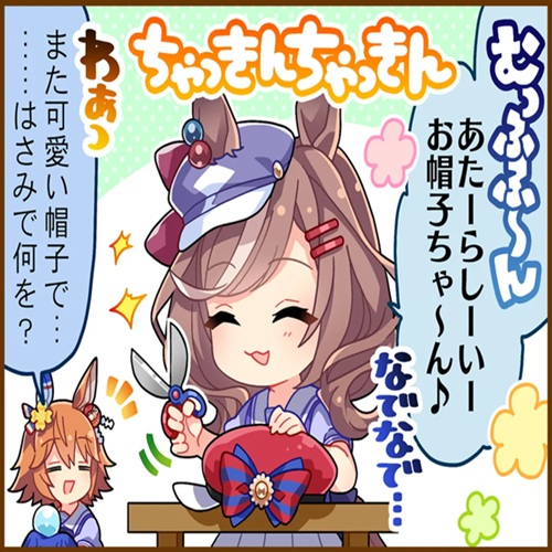 「もうっ…子供扱いして〜」って言いながらお年玉を受け取り、その後一緒に買い物に行き受け取ったお年玉でお揃いの物を買うブエナビスタ