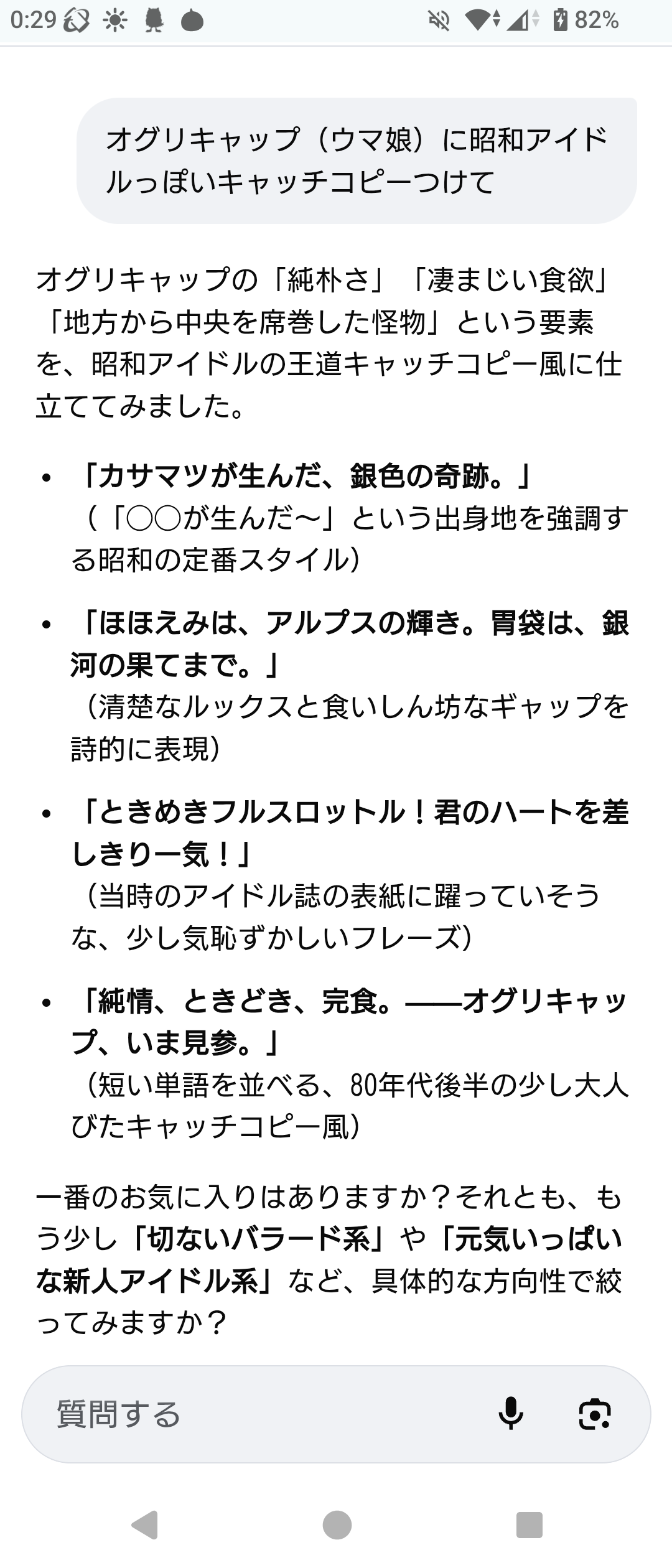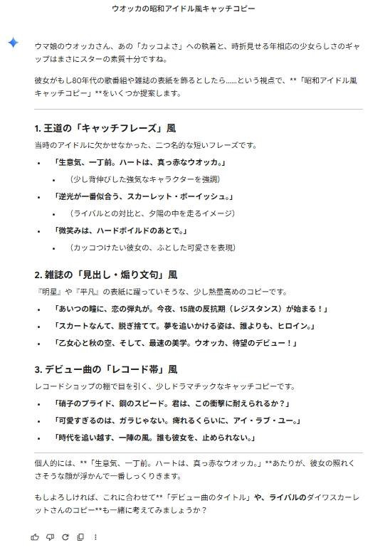 ウマ娘ちゃんの昭和アイドル風キャッチコピーをAIに考えてもらうスレ