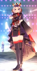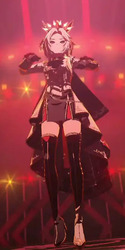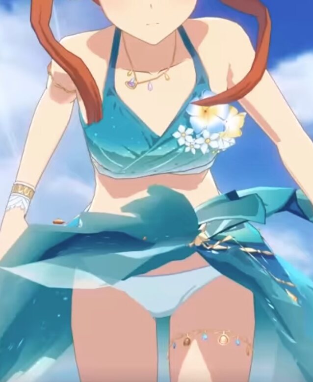谷間におへそガーターとよく見たらだいぶえっちだよなこの衣装…