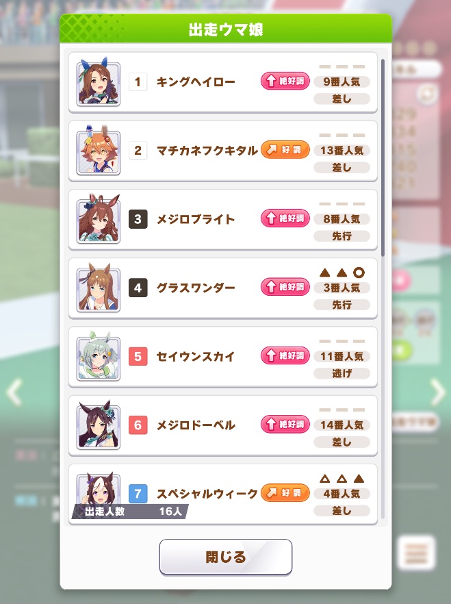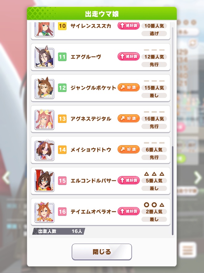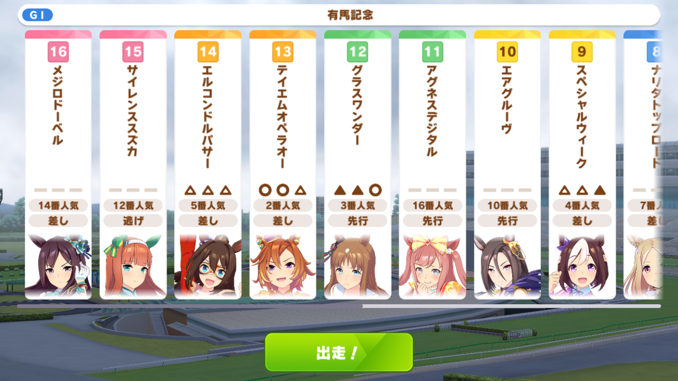 16番枠を引いたオペやドーベルが嘆いているぞ