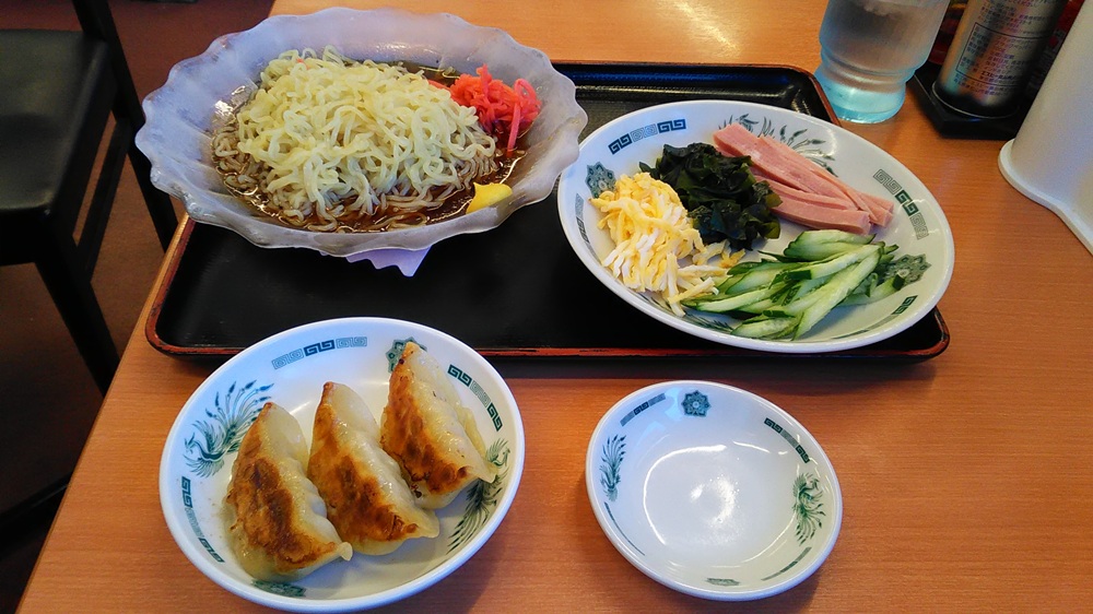冷 し 麺 と 餃 子