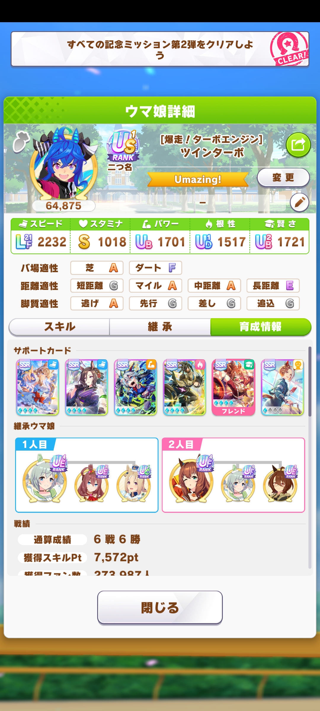 後方脚質はパワーと賢さ上げてなんぼなのにパワーサポカが足りん…
