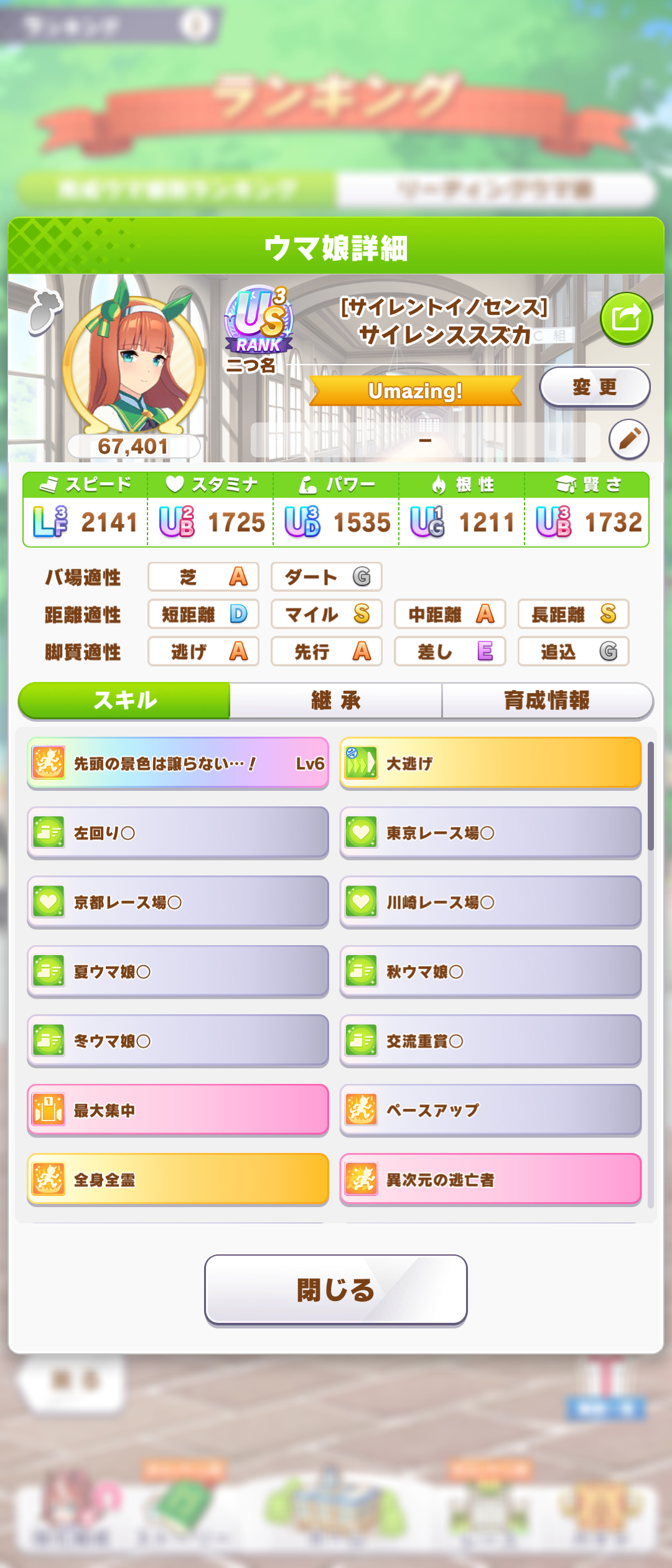 二つ後ろ向きで使える距離限定じゃない金2つあるにはあるけどさぁ…ヒント的に脚質に特化してないし