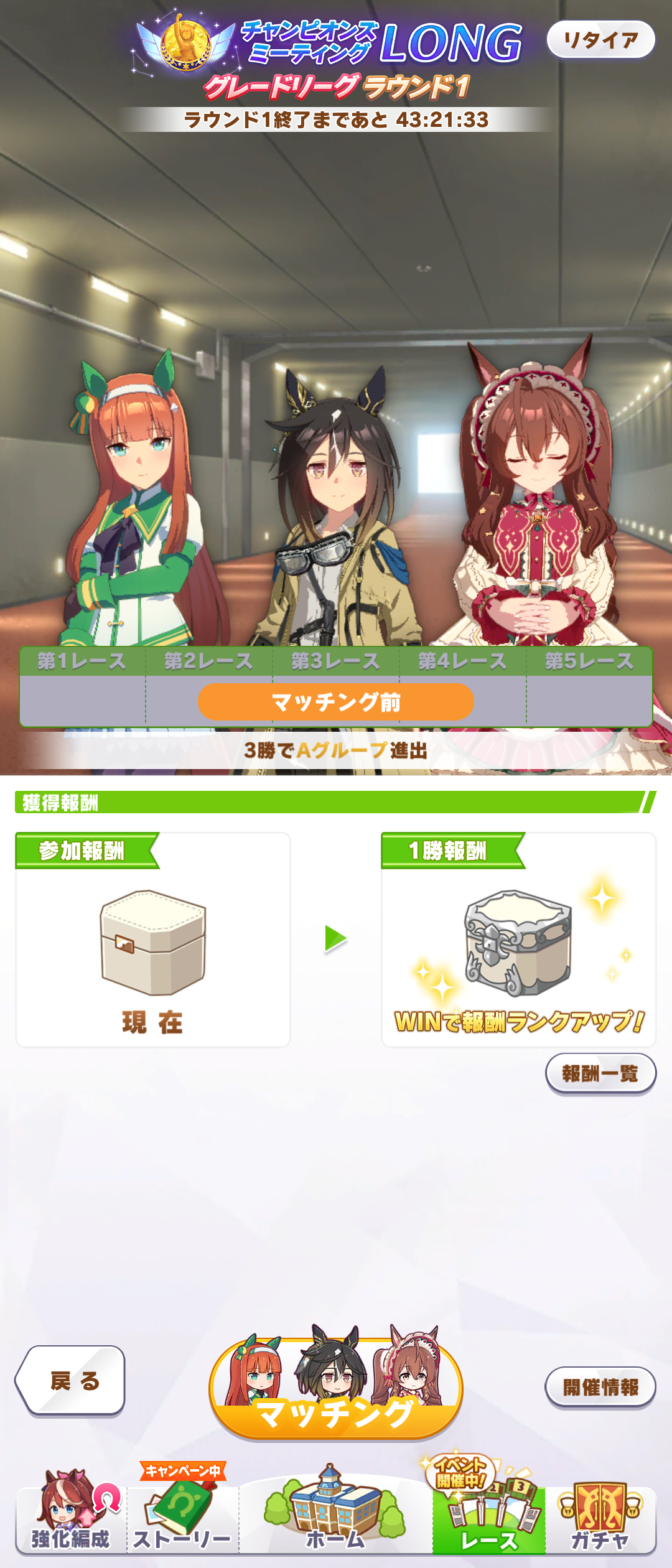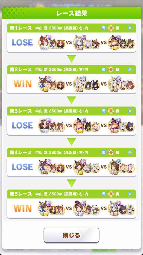 決勝直前にたまたま最終直線系のスキルそこそこ揃った有馬グラス出来たから入れてみたら