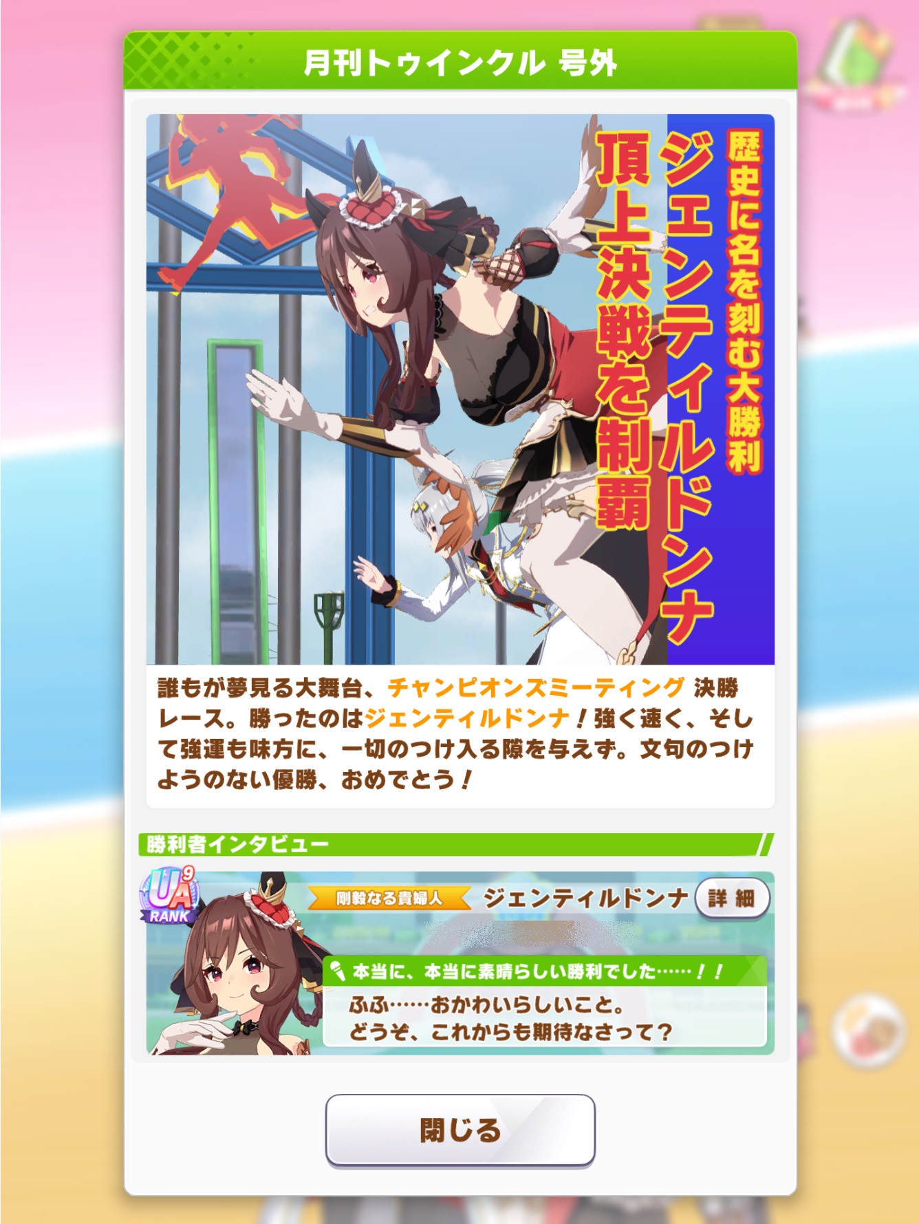 他所の号外写真みるのが楽しみで決勝目指してる(特化UC組めないためグレード参加賞回収勢)。