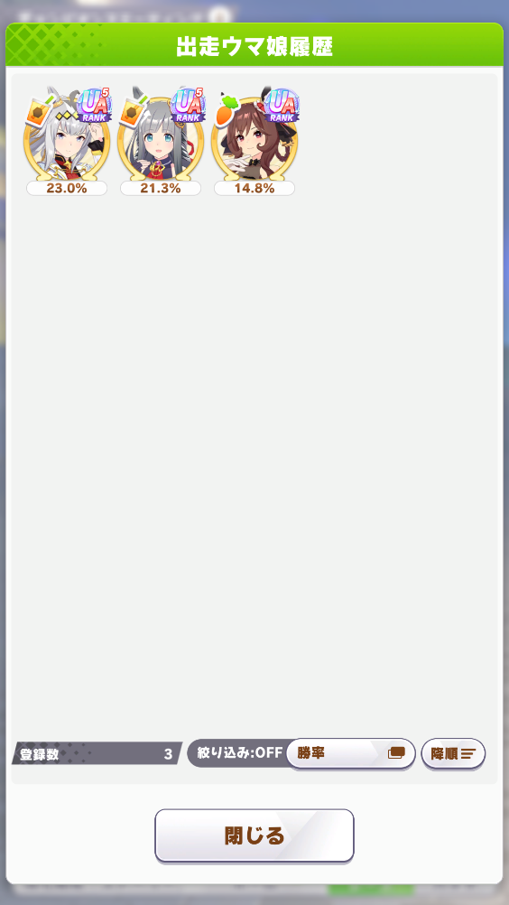 自分エース3人で相手がUS+大逃げデバフ2とエース1+デバフ2だったけど