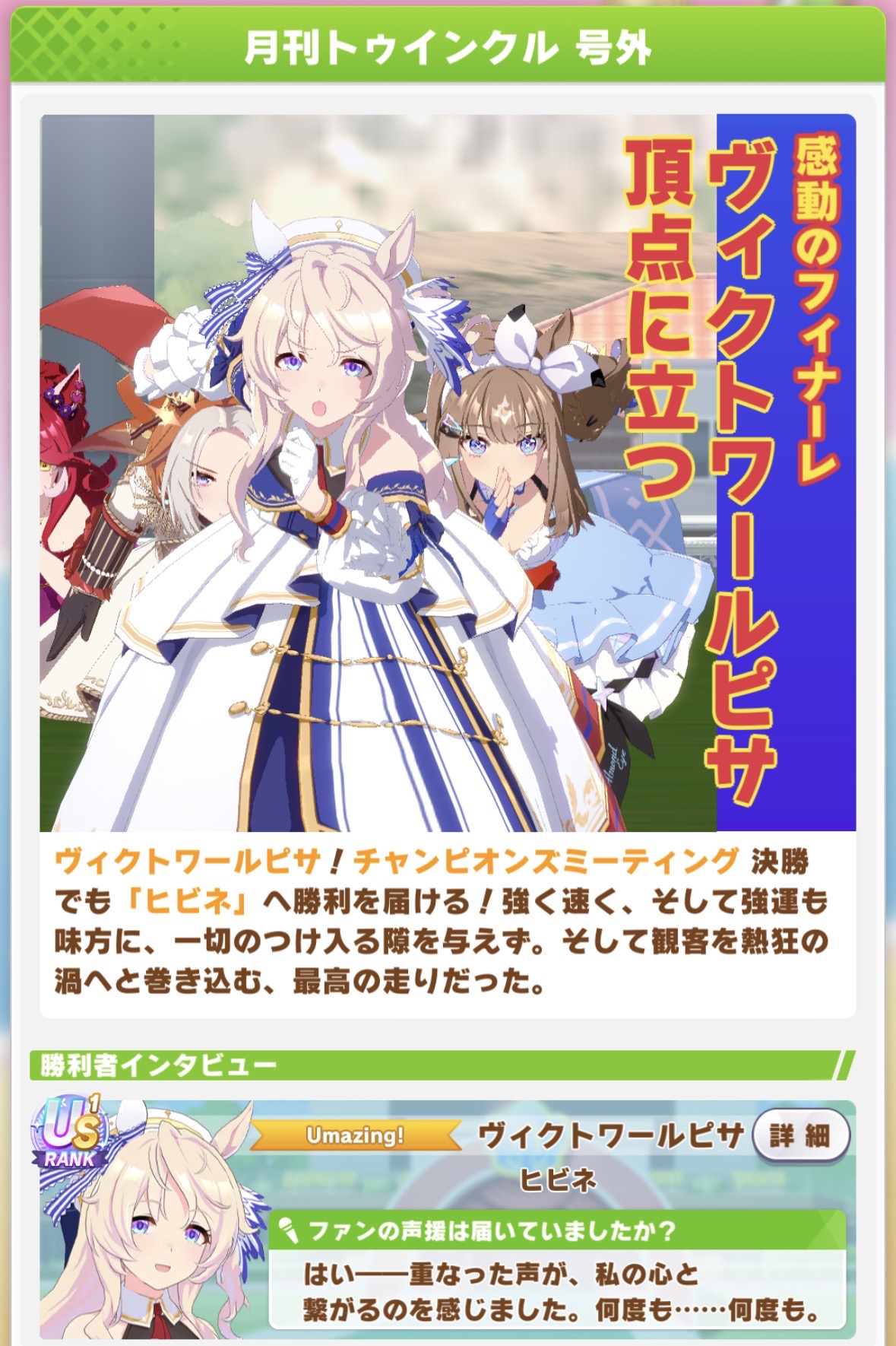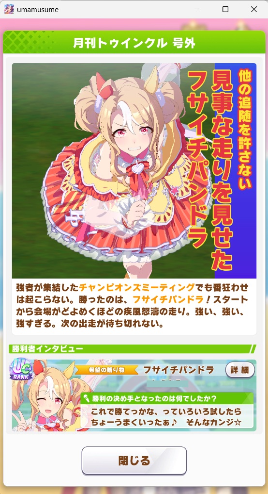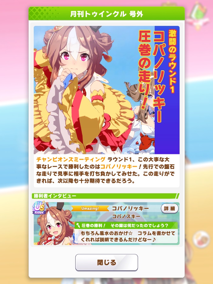 優勝できたけどオープンでBグループだったからだろうか相手のウマ娘の登録日が去年だったり一番古いのだと3年前だったのだ