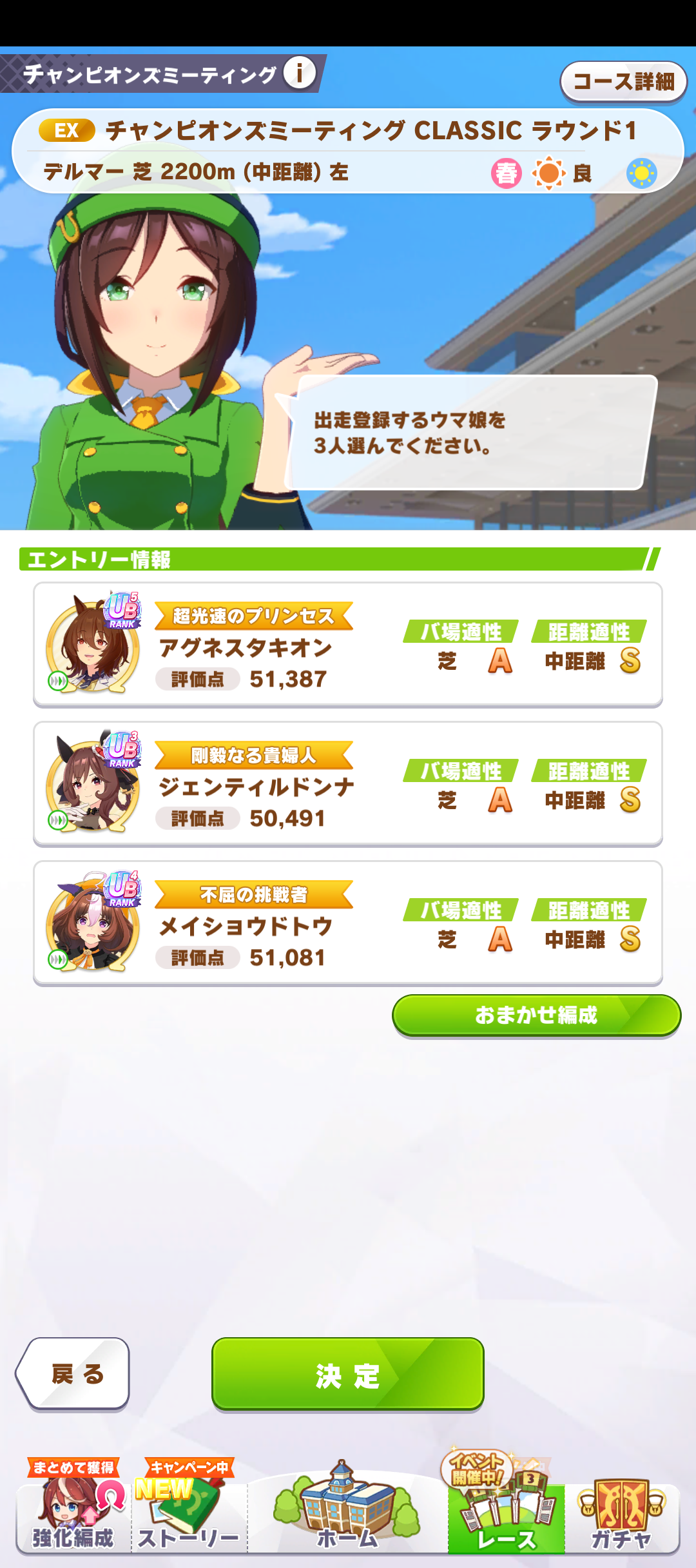 先行は最速のショーダウン(勇気の一歩)に加え夢の舞台へ等ランダム加速
