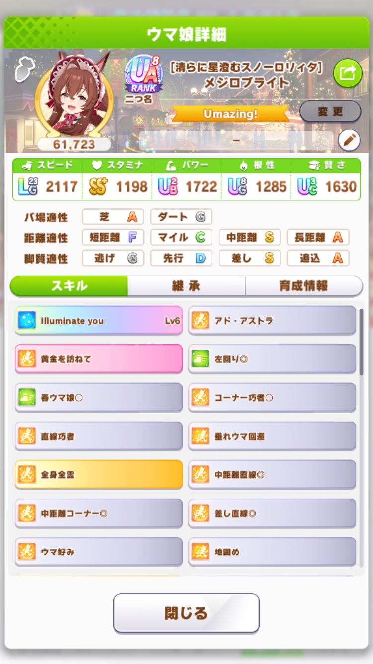 逃げの加速は勝ち鬨+Doyaの長距離の継承2種セット