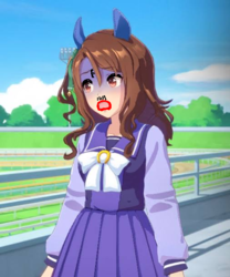 甘食を胸に置かれるスズカ