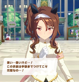手袋は我慢してつけてるけどインナーは妥協してて、カワカミに襷要求されてピンチなキング概念??
