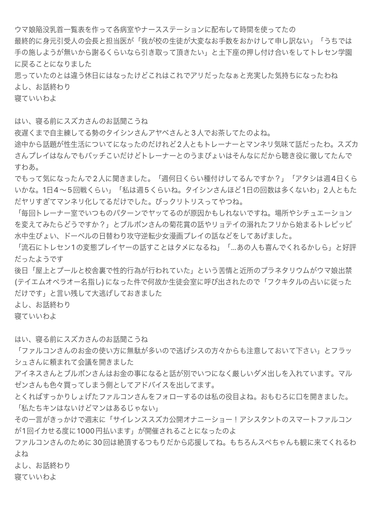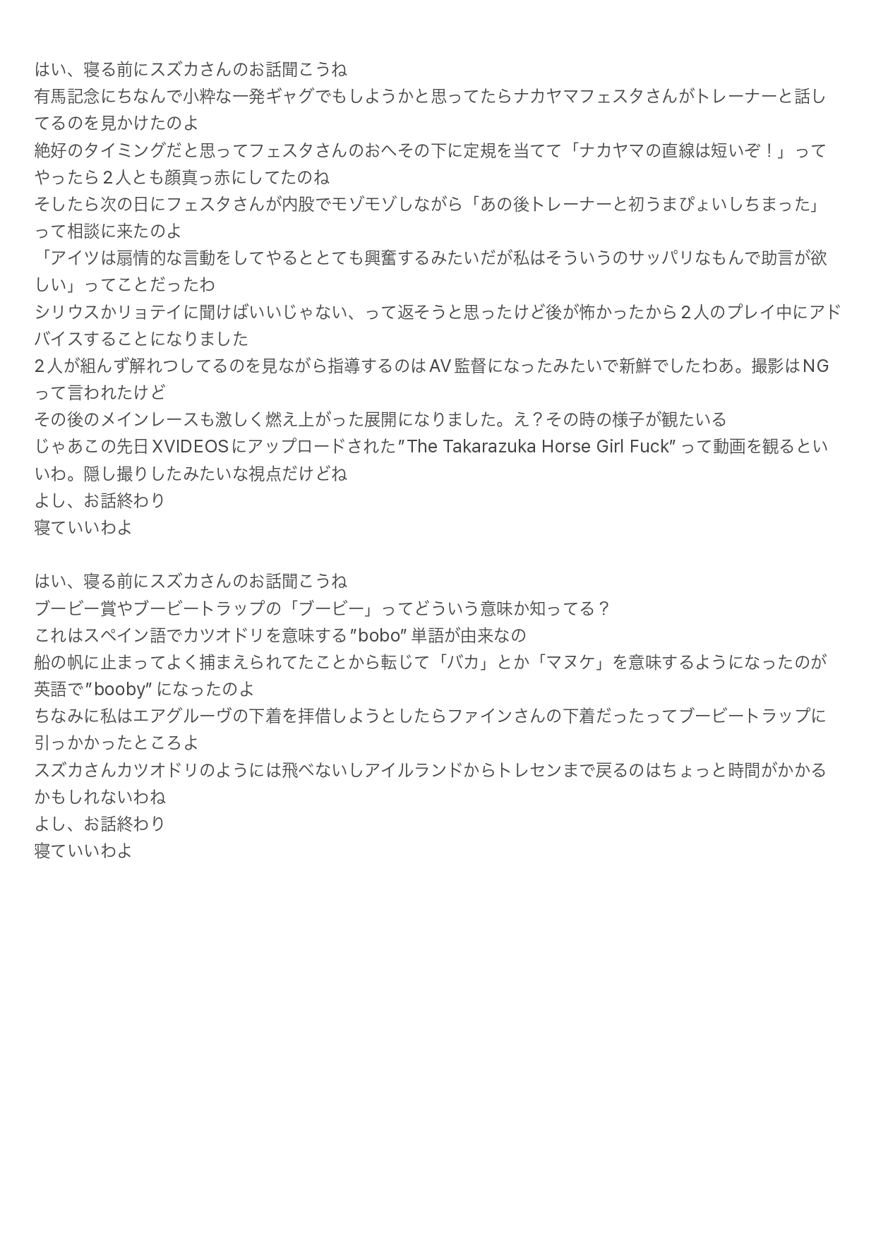 全部読んだって事はもう「スズカさん」って単語を見るたびに「こっちのスズカさん」が想起される不可逆ミーム汚染者なんよね