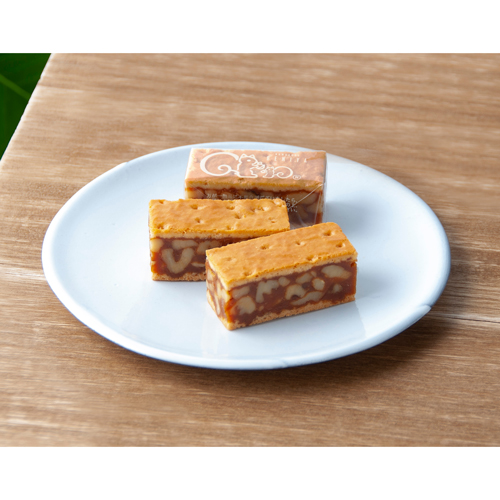 わずかにシロップがしみ込んでいない感じの箇所があって始めはがっかりされる方もいるかもしれませんが、その部分がなければ崩れるのではないかと思うほどシロップで柔らかくなったお菓子ですわ!