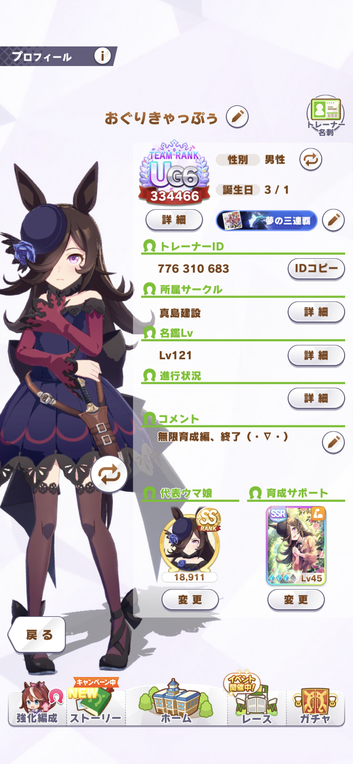 後はトレーナー名とサークル名とコメントと称号だな